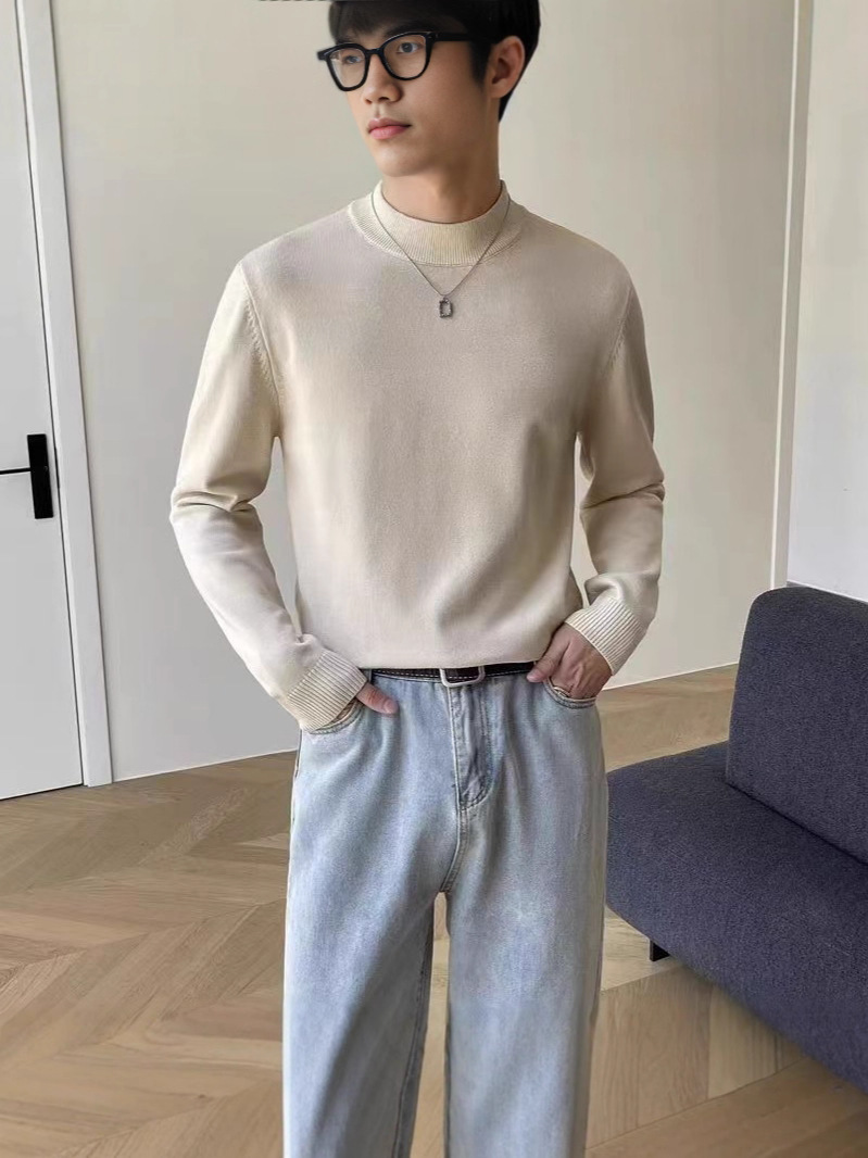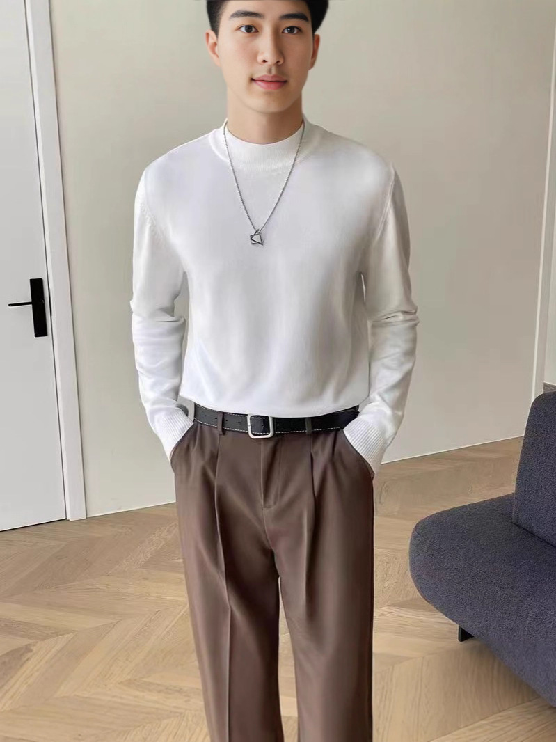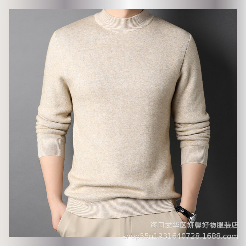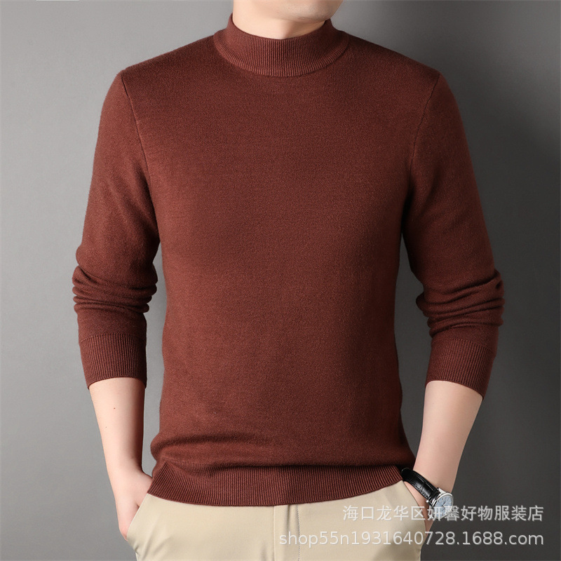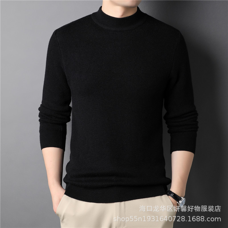 Осенне-зимний мужской свитер с полувысоким воротником, однотонный, облегающий, молодежный базовый свитер, мужская трикотажная одежда.