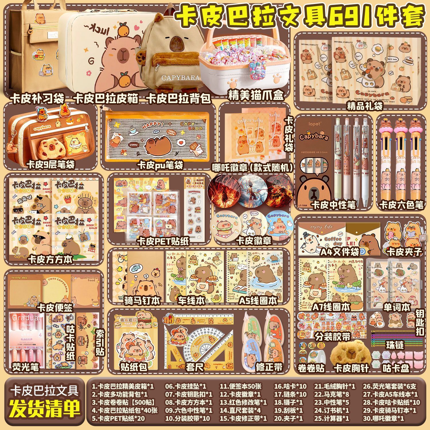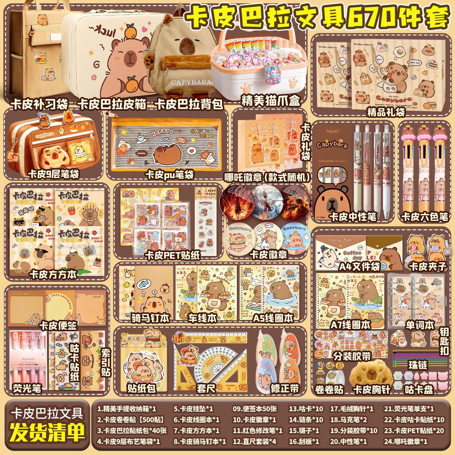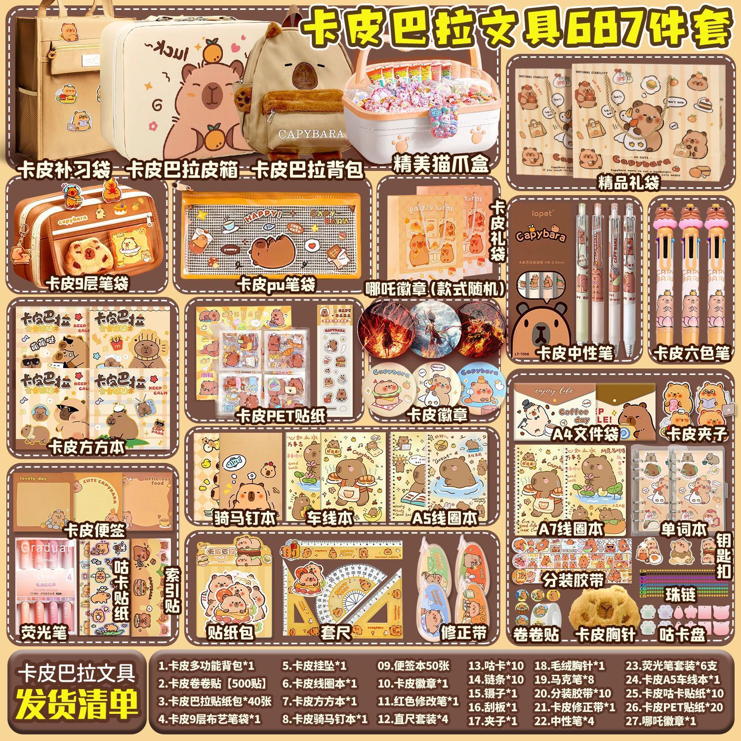 [Kapibala 666] набор штук + подарочный пакет Kapibala; [Kapibala 670] Бесплатный девятислойный пенал/коробка для хранения/квадратный блокнот; [Kapibala 672] Бесплатный девятирядный пенал/трехслойная коробка/квадратная книга; [Kapibala 690] Бесплатный роскошный чемодан Kapibala + девятирядный пенал; 【Kapibala 691】Бесплатный роскошный чемодан Kapibala + многофункциональная школьная сумка; 【Kapibala 674】Бесплатный рюкзак для хранения Kapibala/Fangfangbook; [Kapibala 685] Бесплатный девятирядный пенал/коробка для кошачьих когтей/квадратный блокнот; [Kapibala 687] Бесплатный девятирядный пенал/сумка для хранения/квадратный блокнот; Пакет обновления сумки-руководства Kapibala; Комплект обновления 9-слойного тканевого пенала Kapibala; Пятислойная школьная сумка Kapibala, модернизированная сумка
