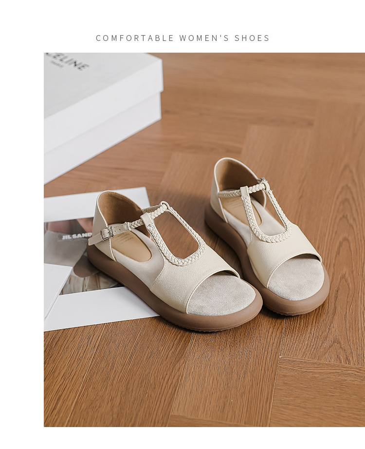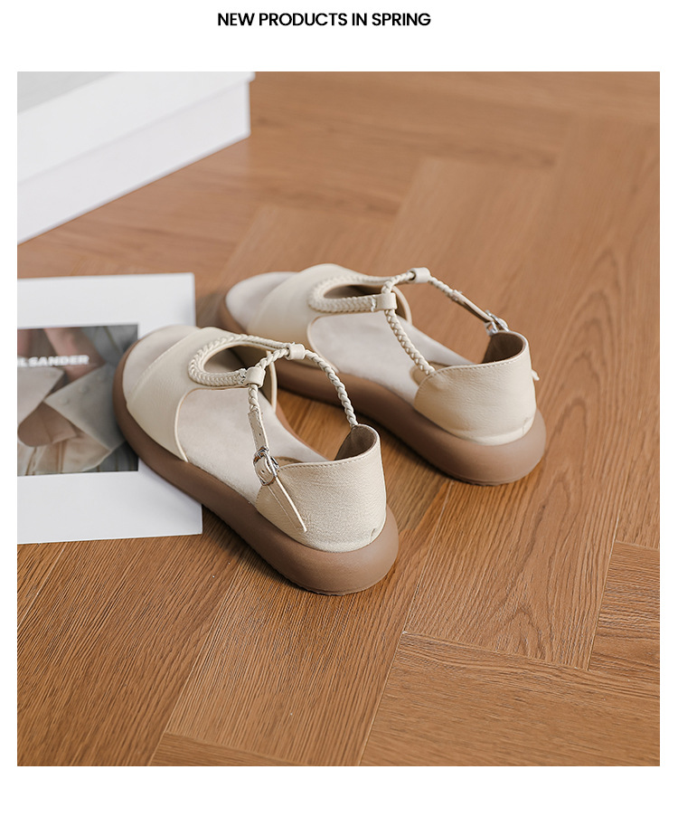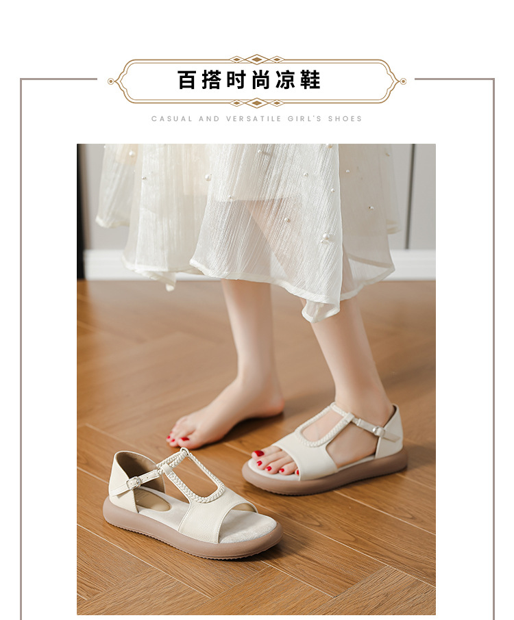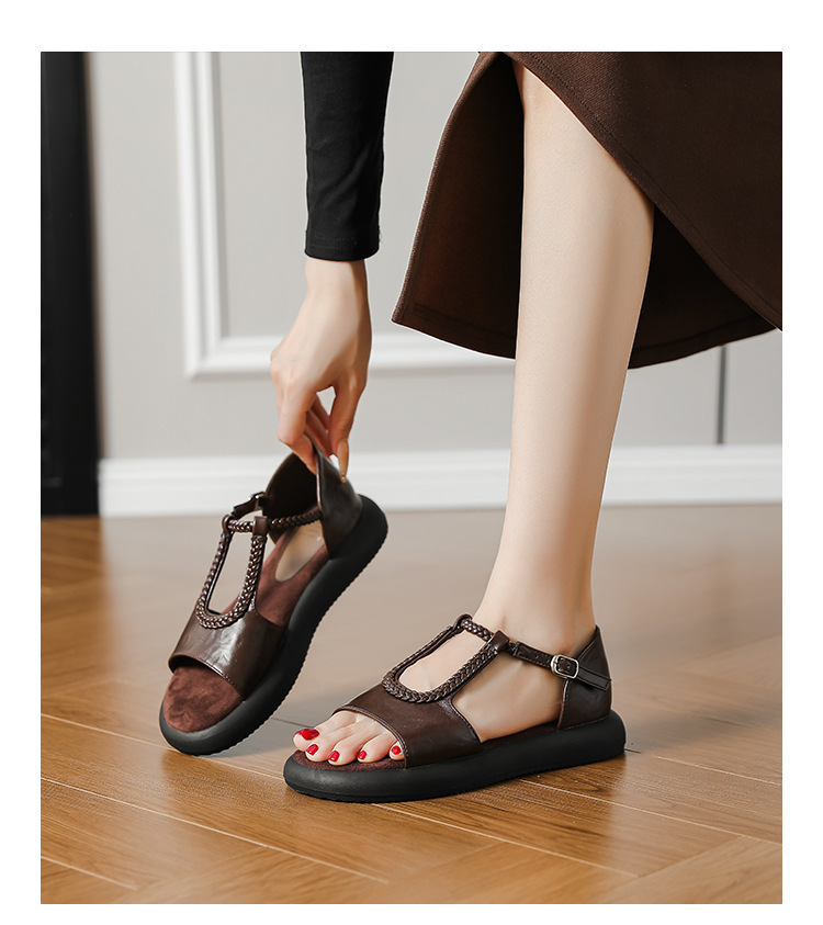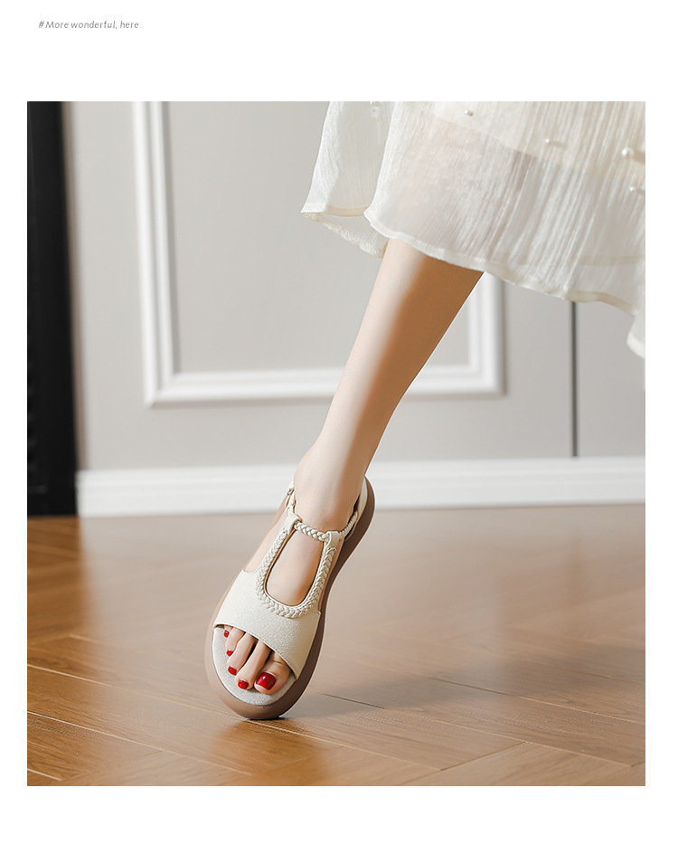 Легкие и стильные французские ретро-сандалии с плетеным ремешком для женщин, летние новые открытые сандалии на плоской подошве с одним ремешком в стиле римских сандалий.
