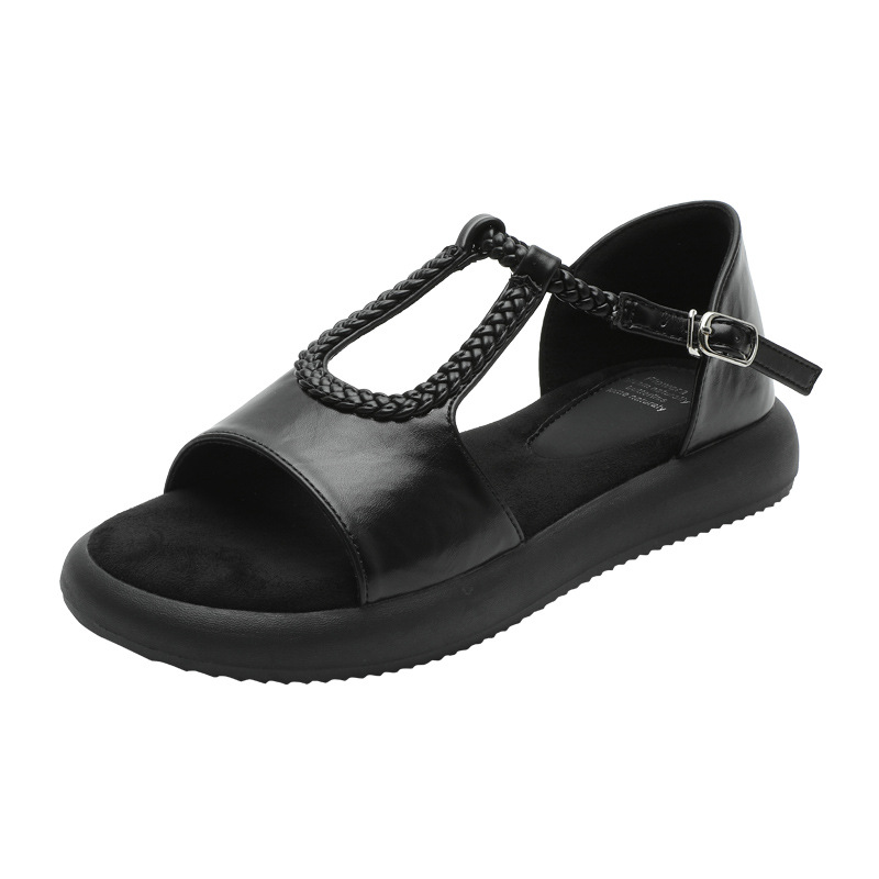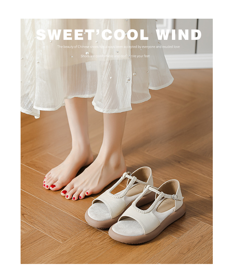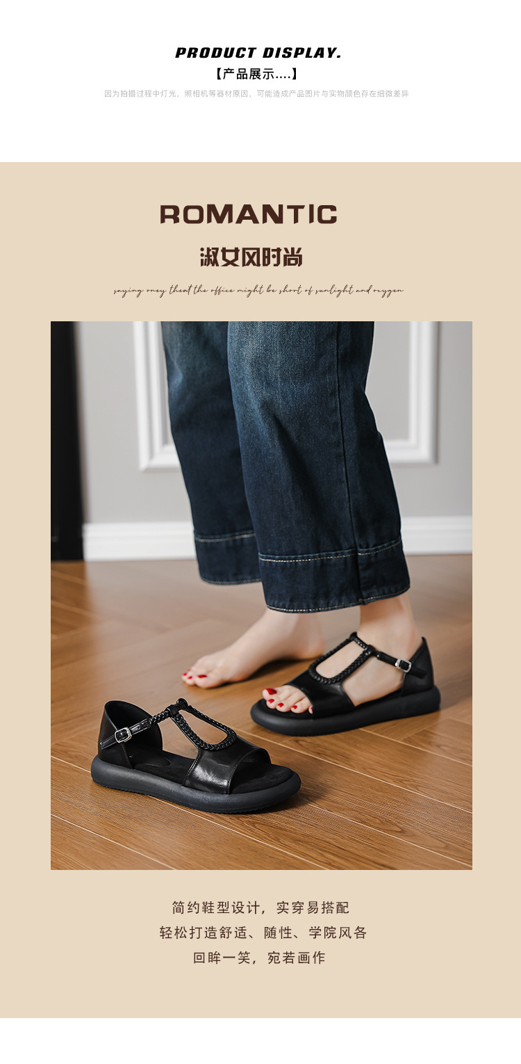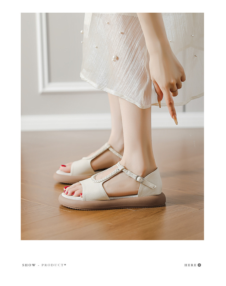 Легкие и стильные французские ретро-сандалии с плетеным ремешком для женщин, летние новые открытые сандалии на плоской подошве с одним ремешком в стиле римских сандалий.