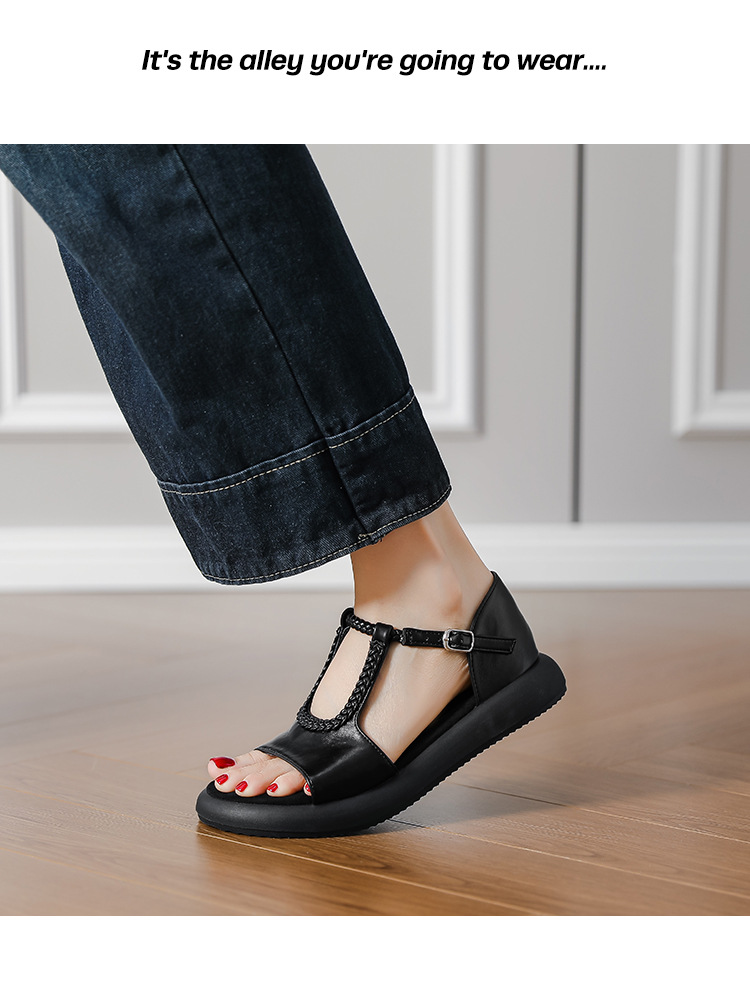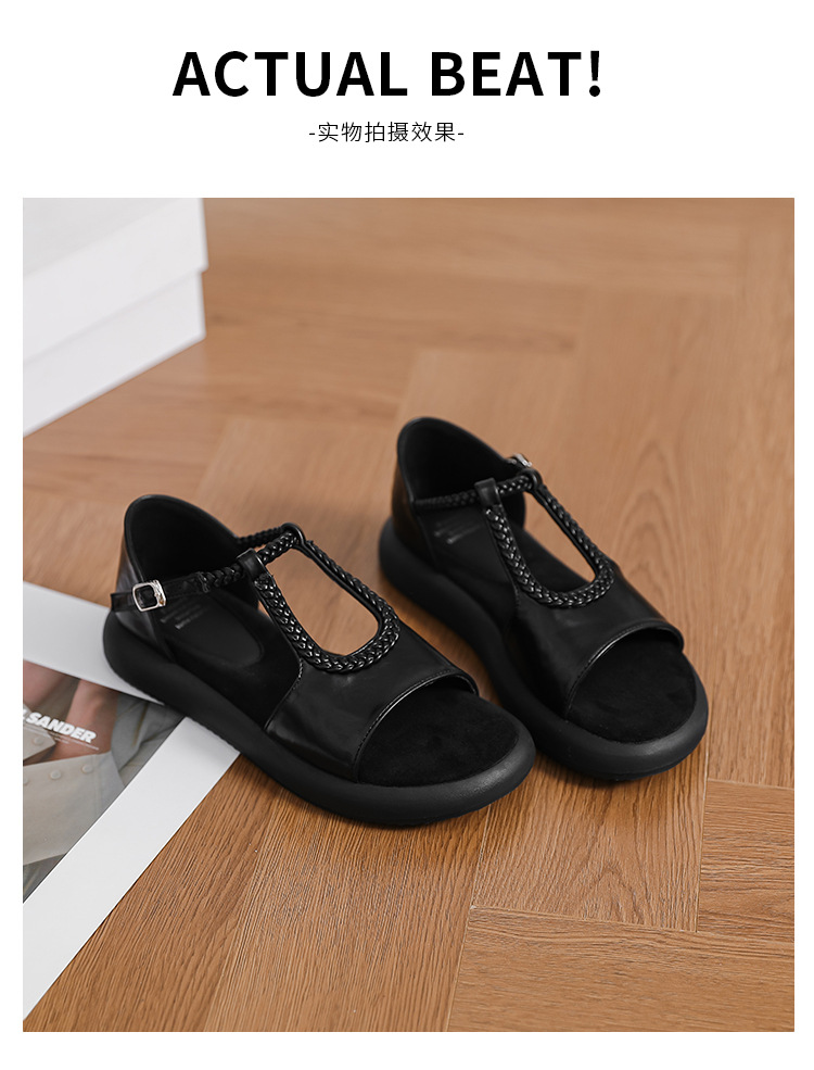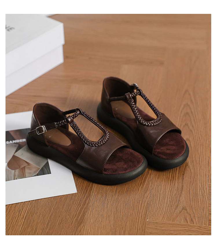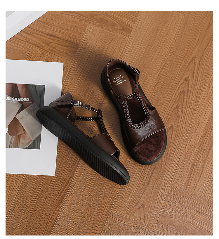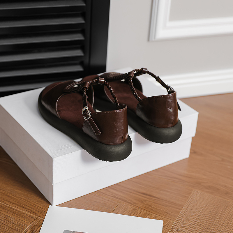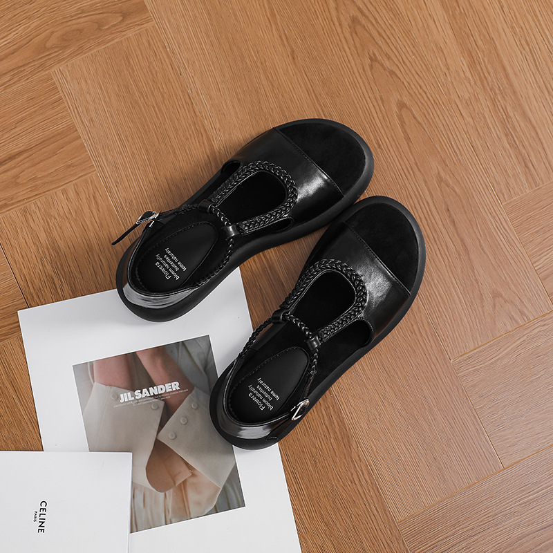 сплошной цвет; плетение; ретро; Т-образный ремешок; пряжка; ремешок на щиколотке