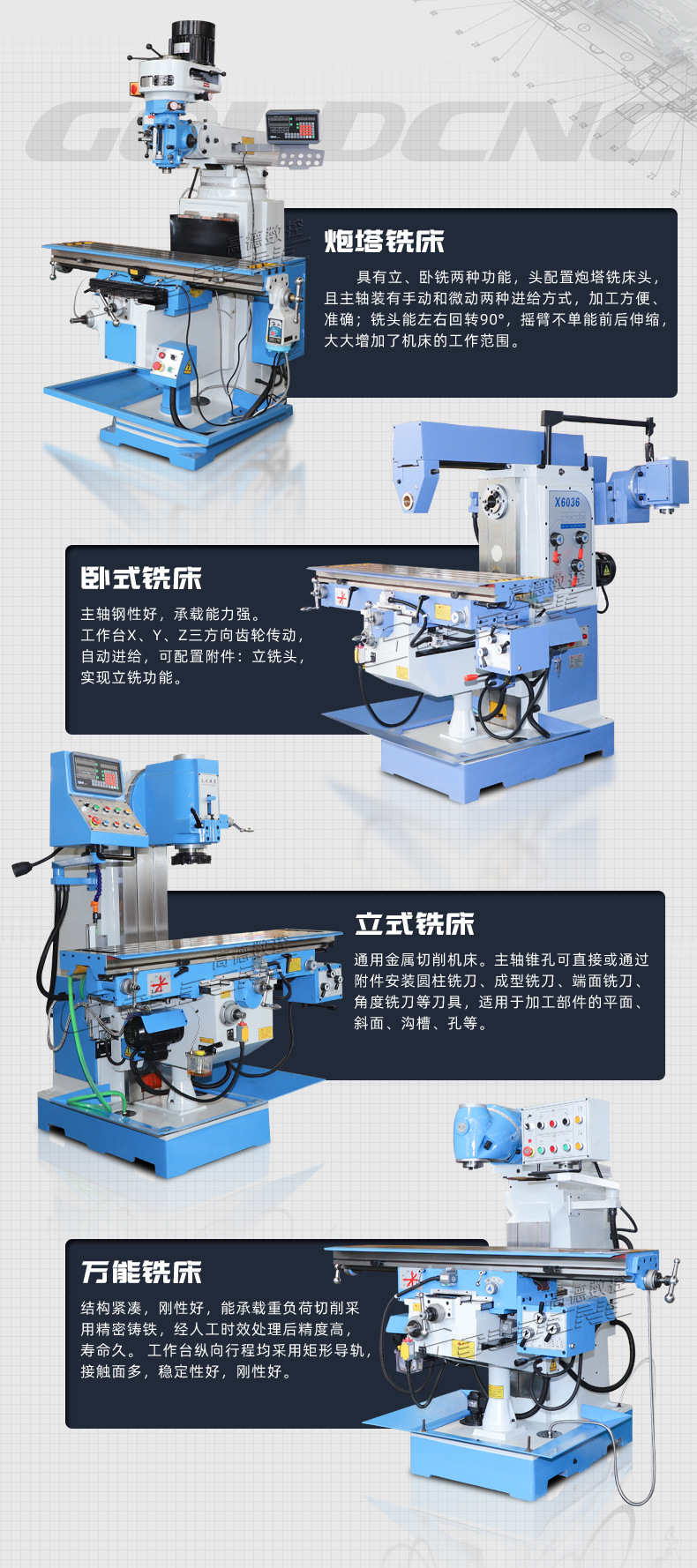 Револьверный фрезерный станок X6336 [высокая стабильность резки]; Универсальный фрезерный станок x6232 [Многофункциональная интеграция]; Сверлильно-фрезерный станок ZX6350 [сверление и фрезерование в одном устройстве]