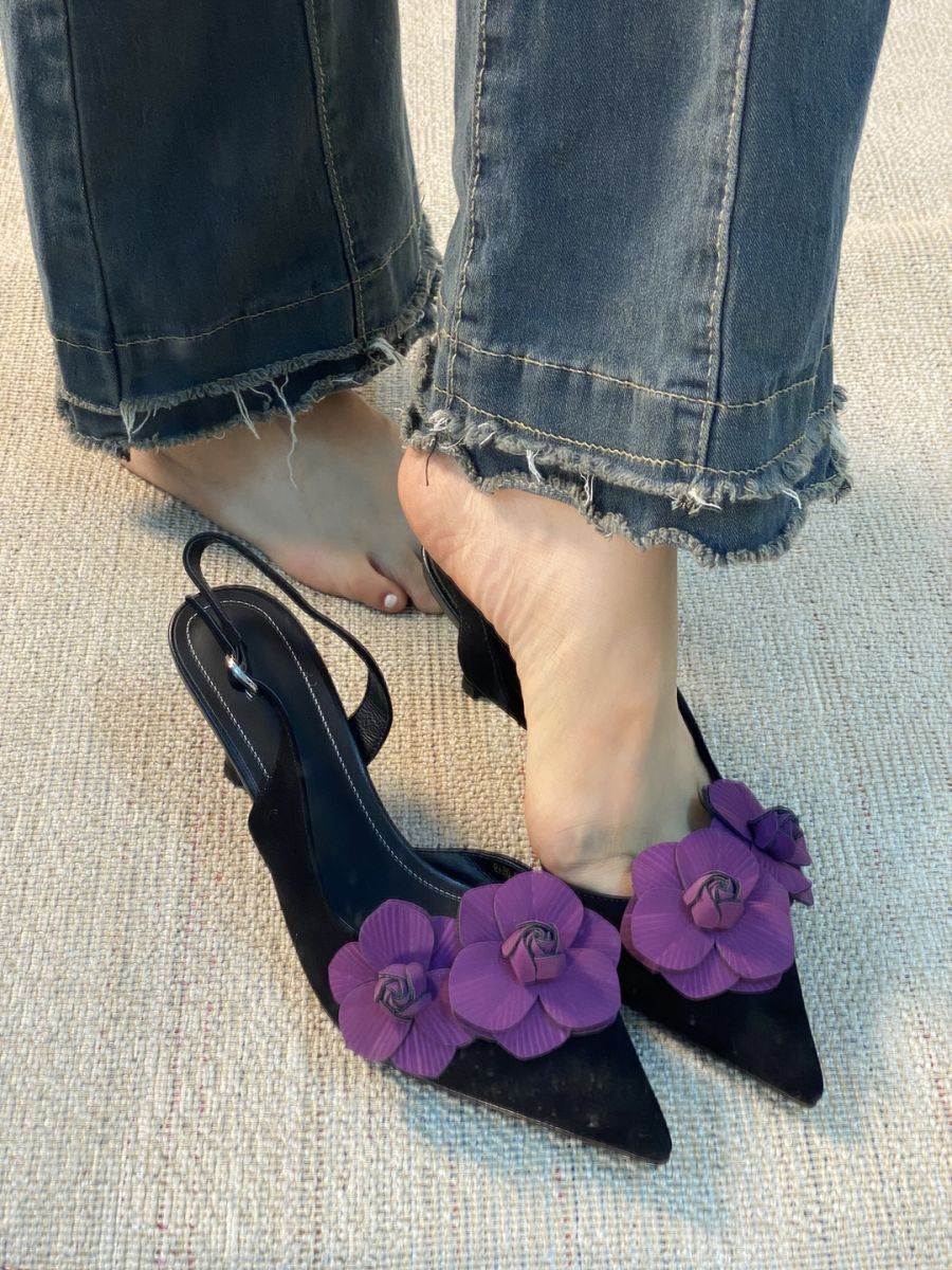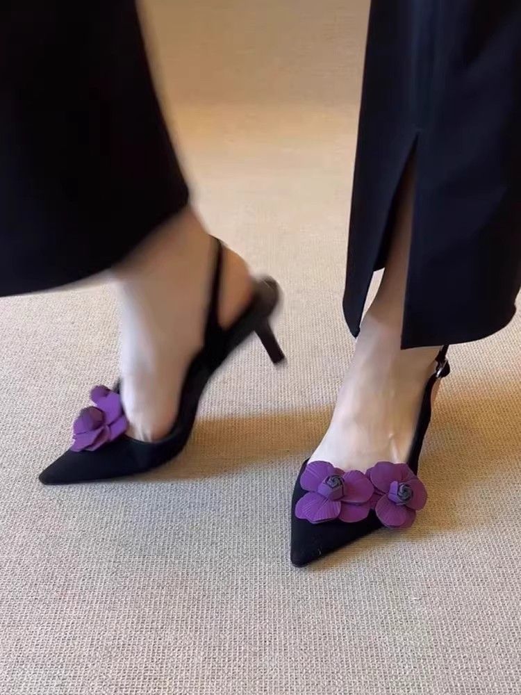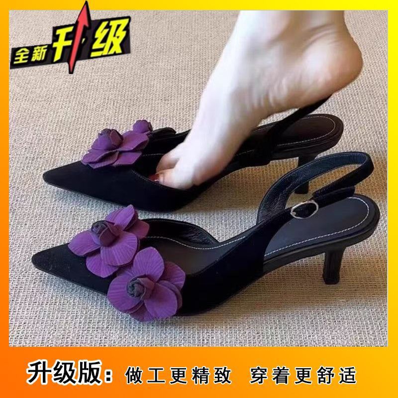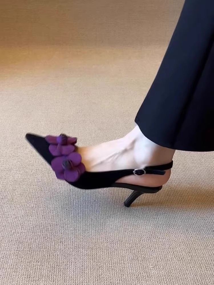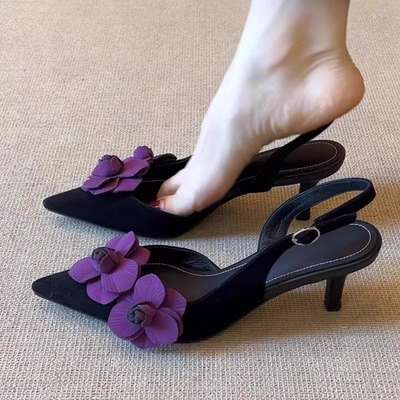 Элегантные женские босоножки на высоком каблуке-шпильке с открытым носком, заостренным носком, ремешком на щиколотке и открытой пяткой, французский стиль, коллекция 2025 года.