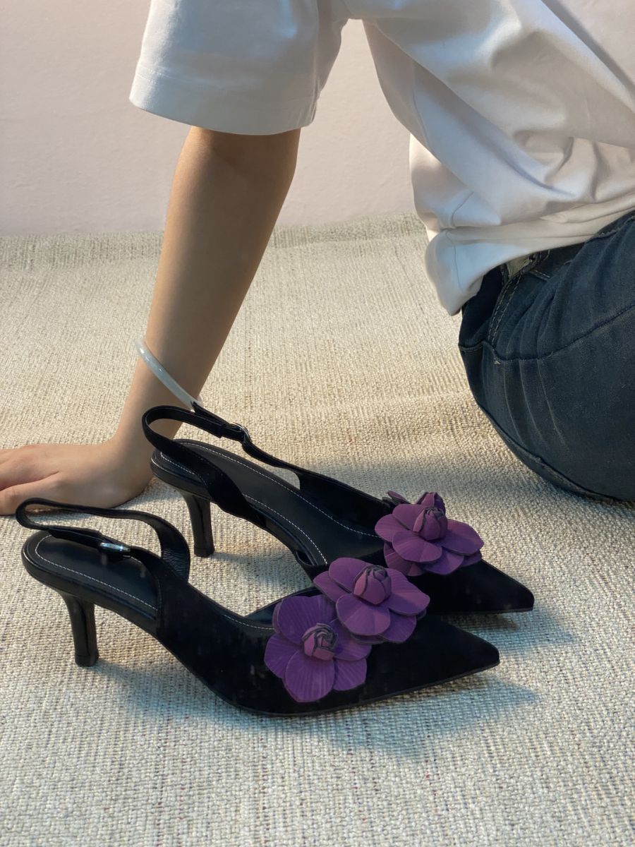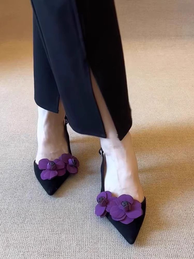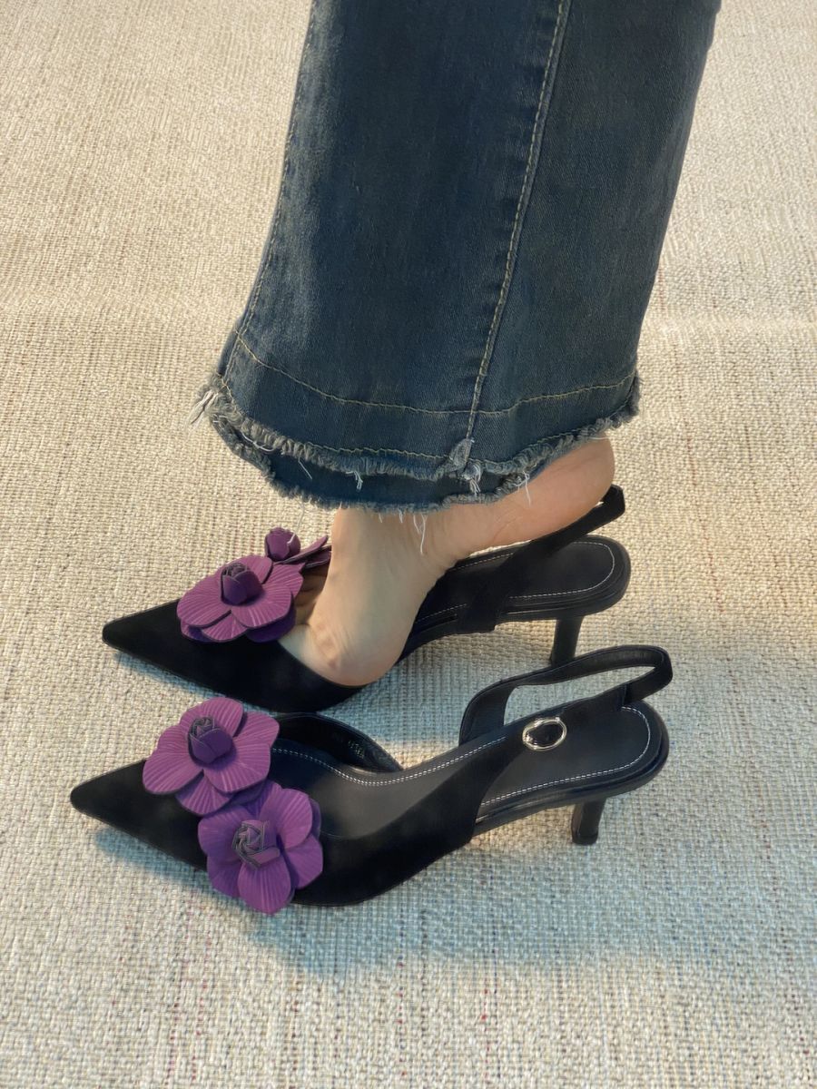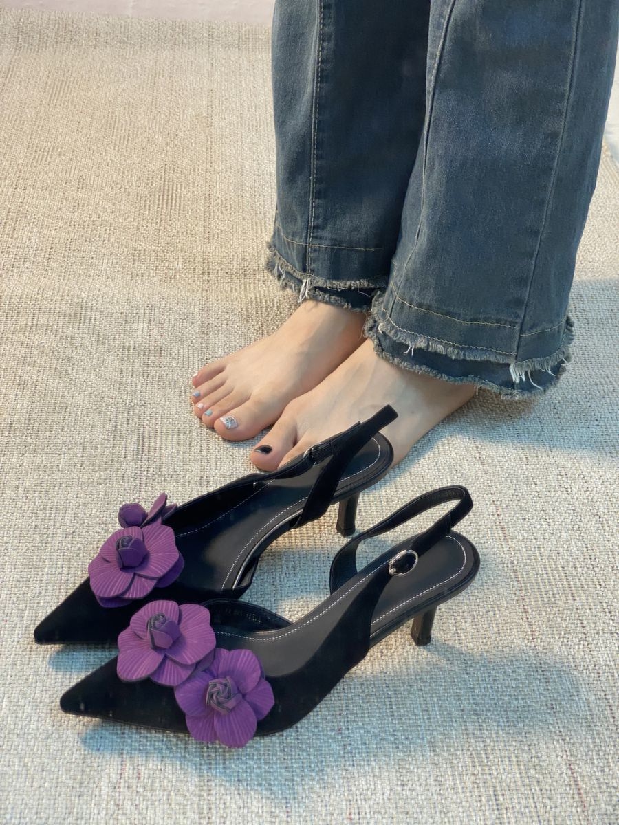 Элегантные женские босоножки на высоком каблуке-шпильке с открытым носком, заостренным носком, ремешком на щиколотке и открытой пяткой, французский стиль, коллекция 2025 года.