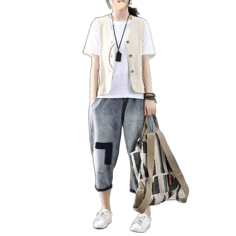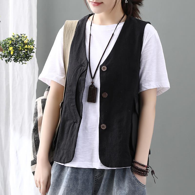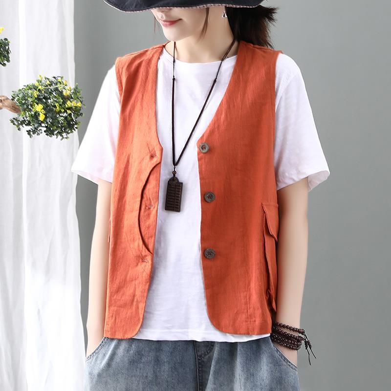 Хлопковый ретро-жилет для женщин весна-лето 2025, свободный, без рукавов, с большими карманами, короткий жилет, повседневный кардиган