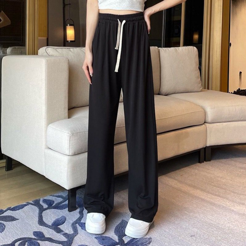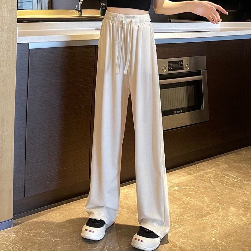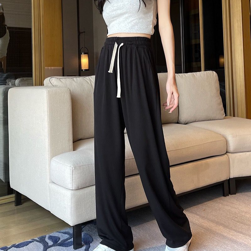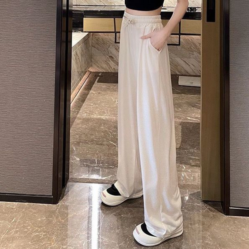 Широкие брюки для женщин, свободные утягивающие повседневные брюки с высокой талией, универсальные летние тонкие прямые брюки в корейском стиле, укороченные миниатюрные.