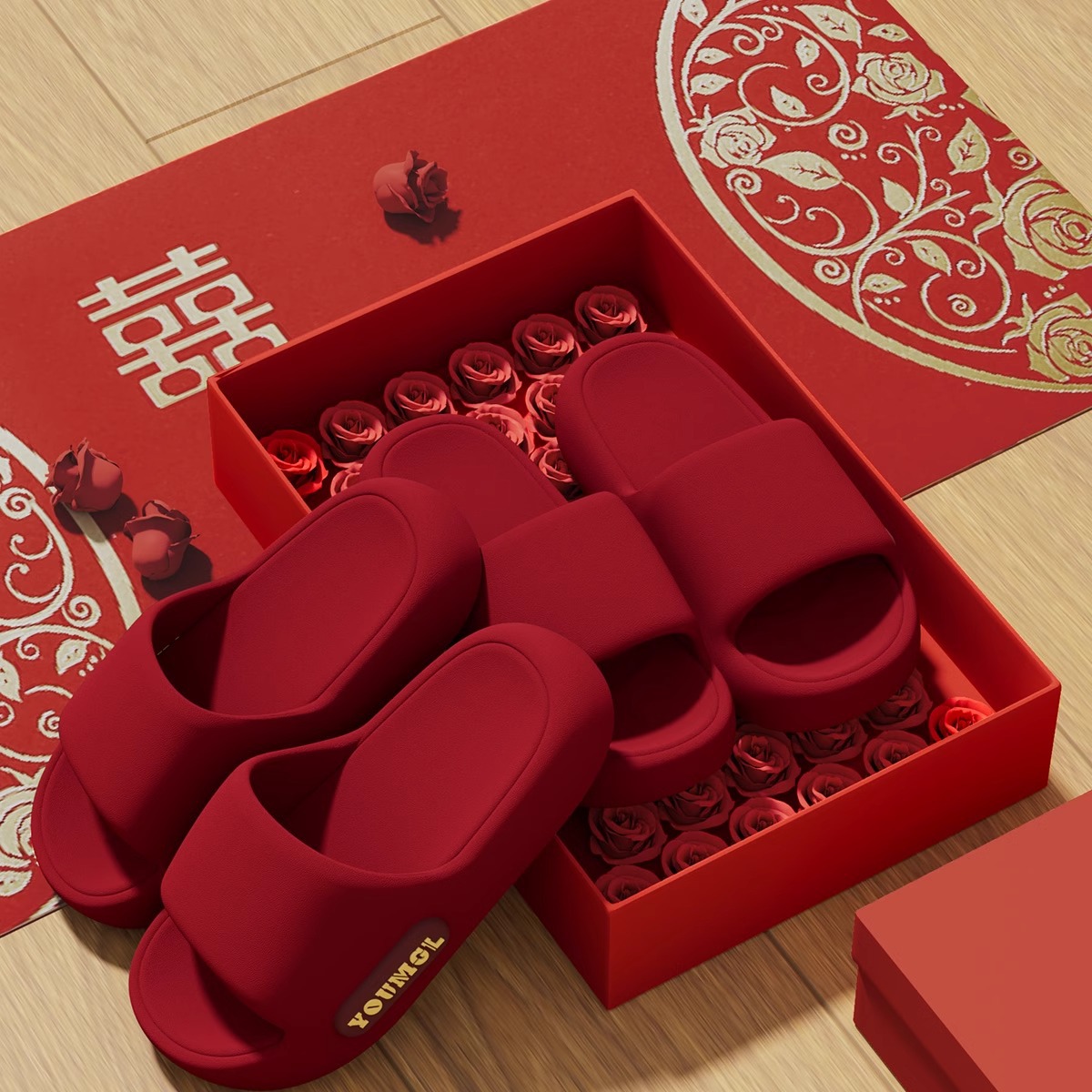 Свадебные тапочки, праздничная красная пара, новые летние свадебные сандалии для невесты, свадебные сандалии на толстой подошве для пары, свадебные туфли