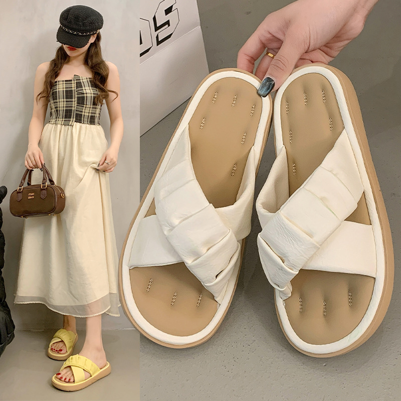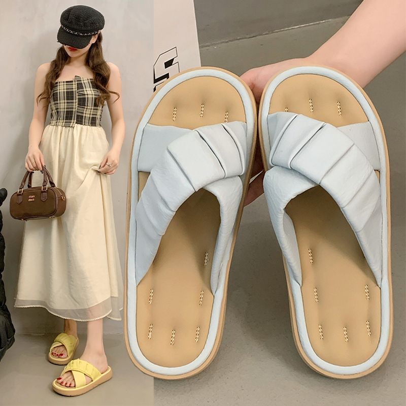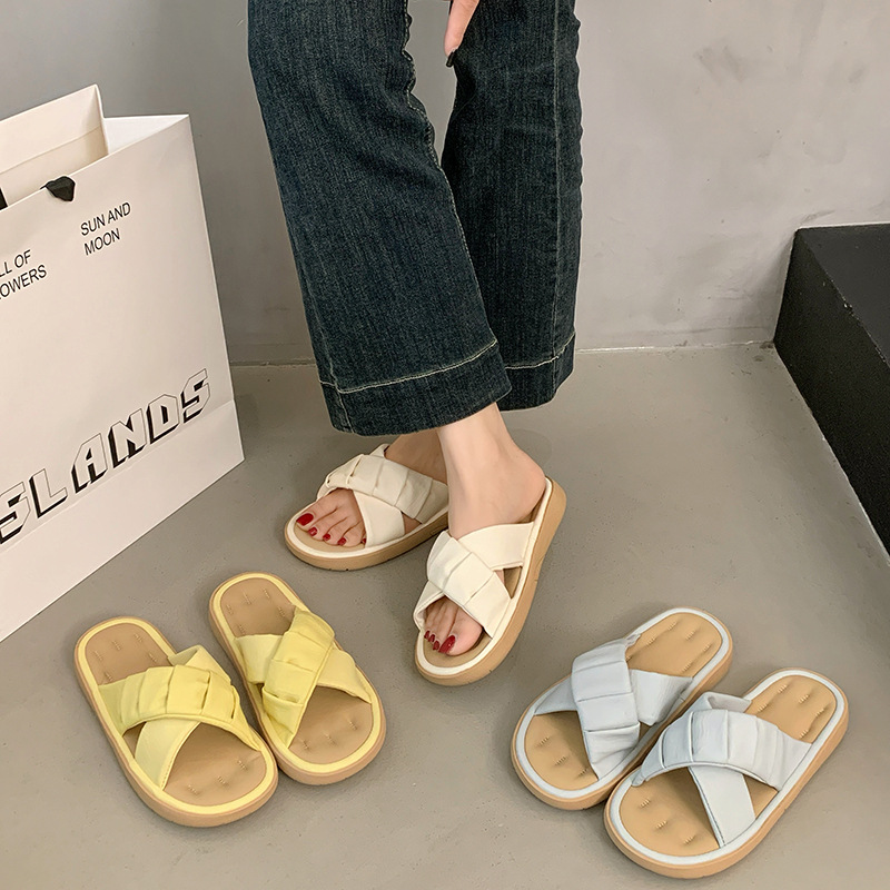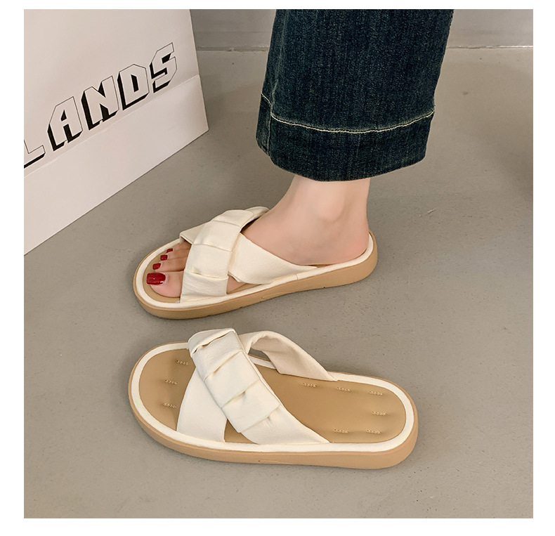 Женские летние сандалии 2025 года, корейский стиль, с перекрестными ремешками, плоские, открытые, с круглым носком, повседневные.