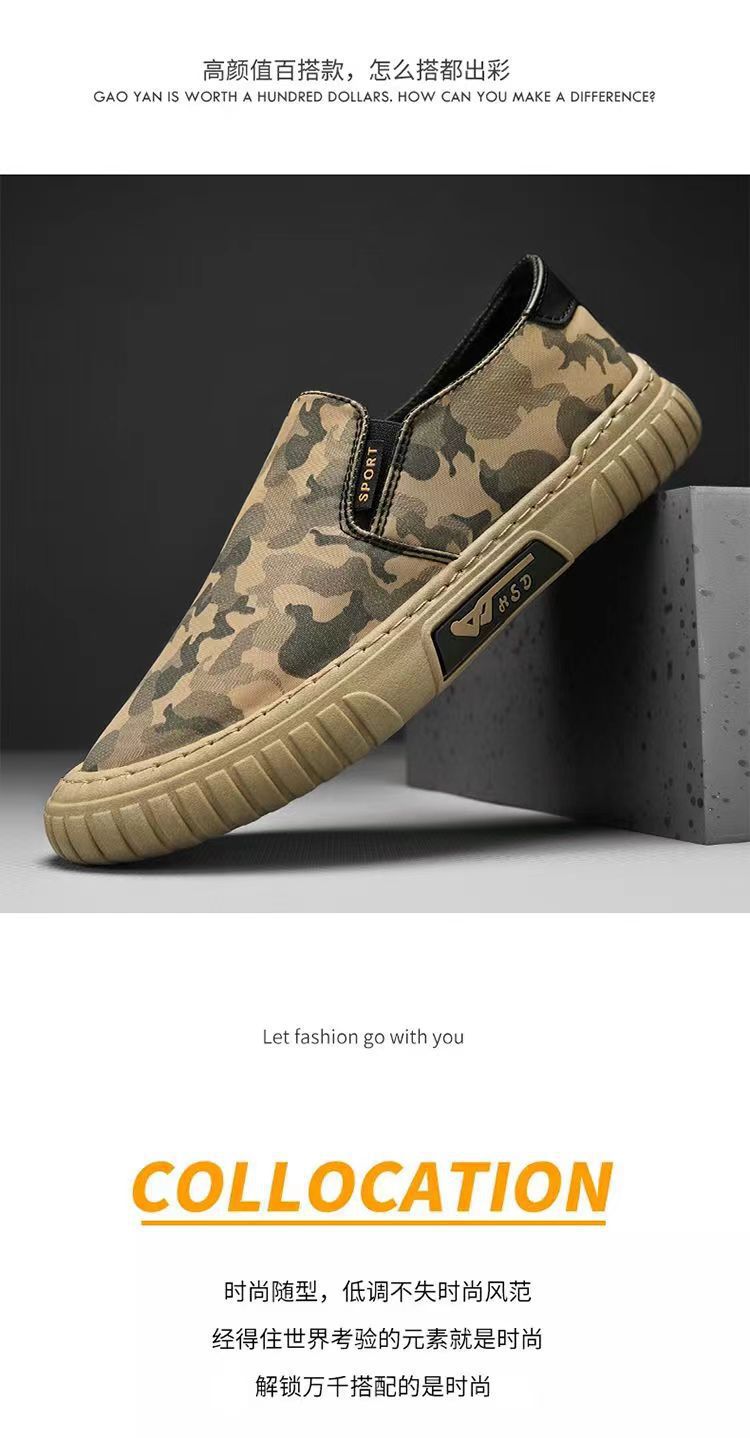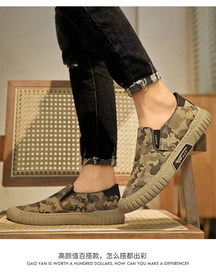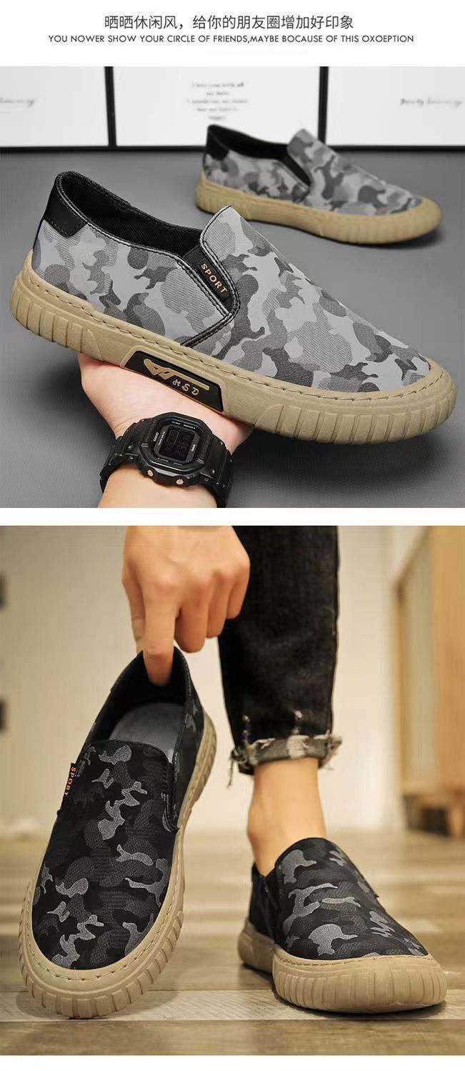 Мужские летние дышащие спортивные повседневные туфли-слипоны из ткани, камуфляжная расцветка, оптом, в стиле старого Пекина