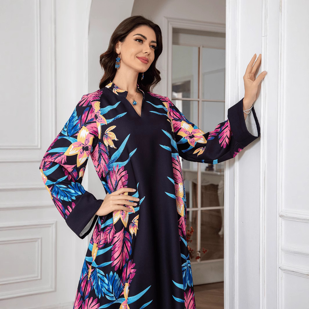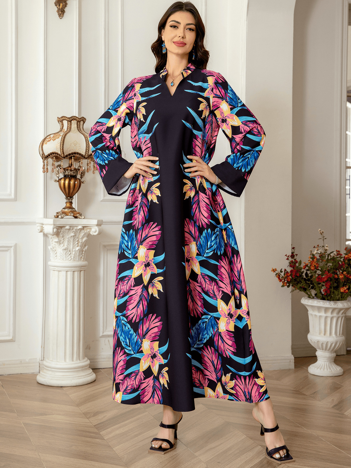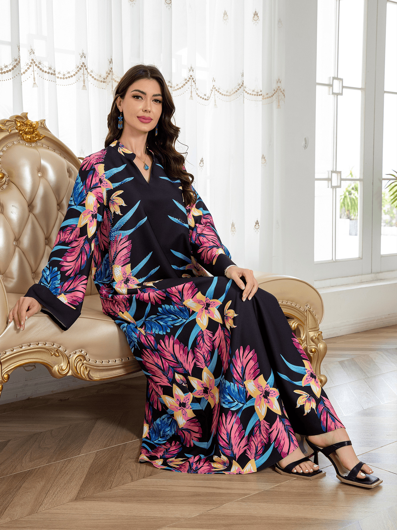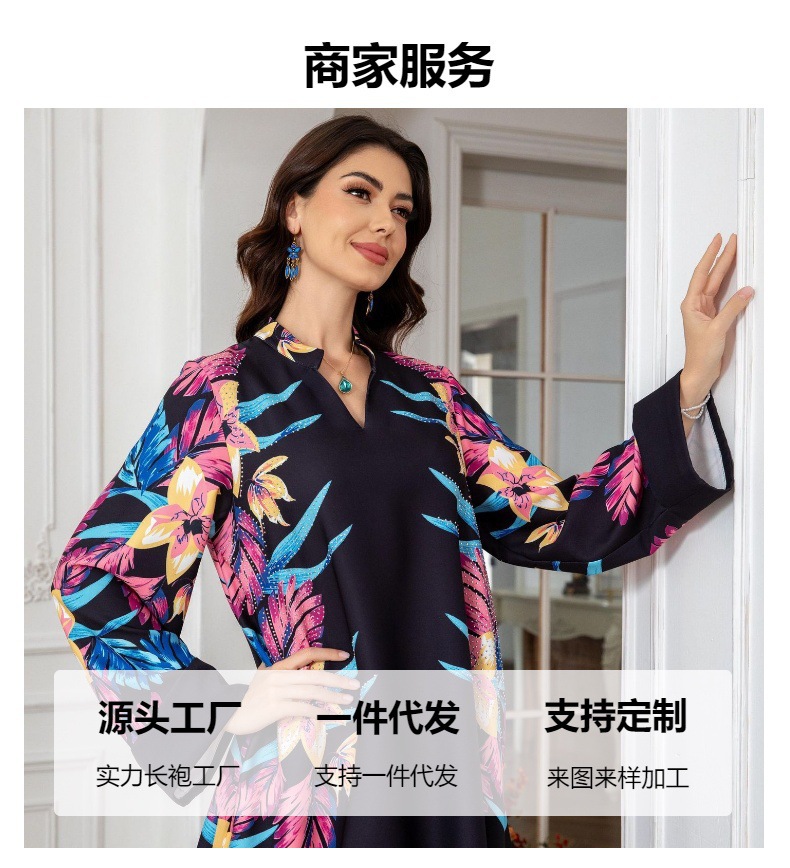 Абая, мусульманское платье-роба в ближневосточном стиле, женская одежда для мусульманок, с цветочным принтом, арабская роба