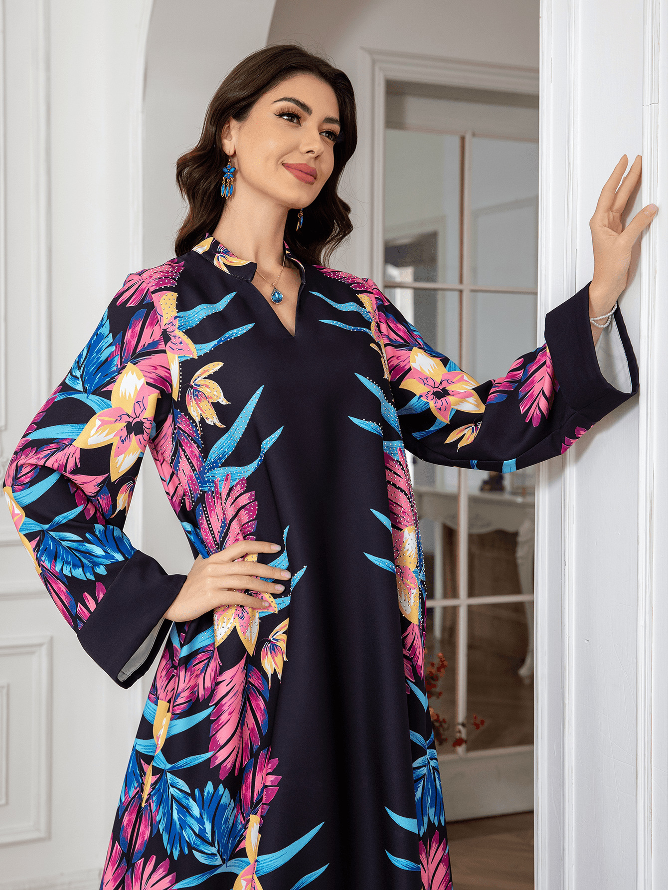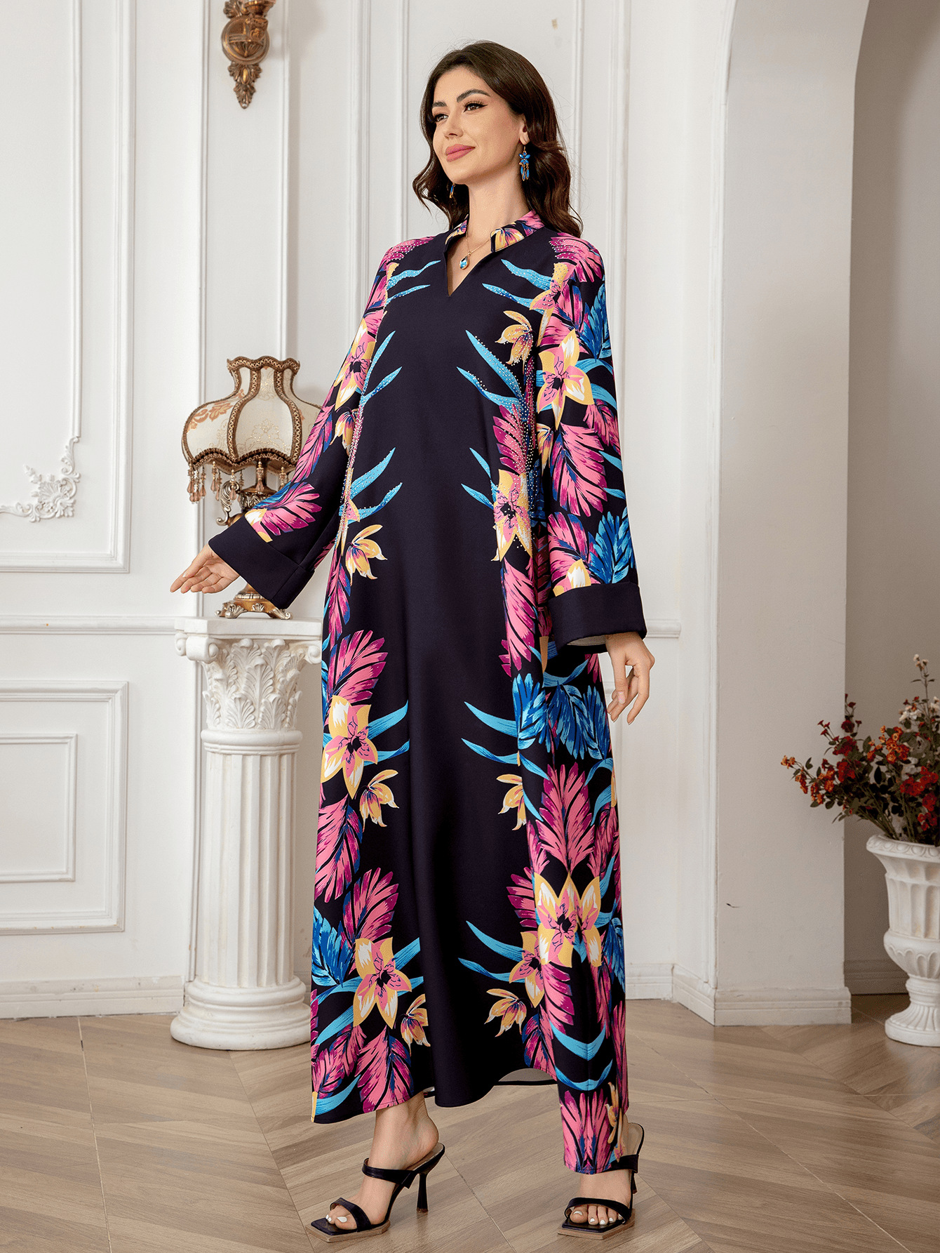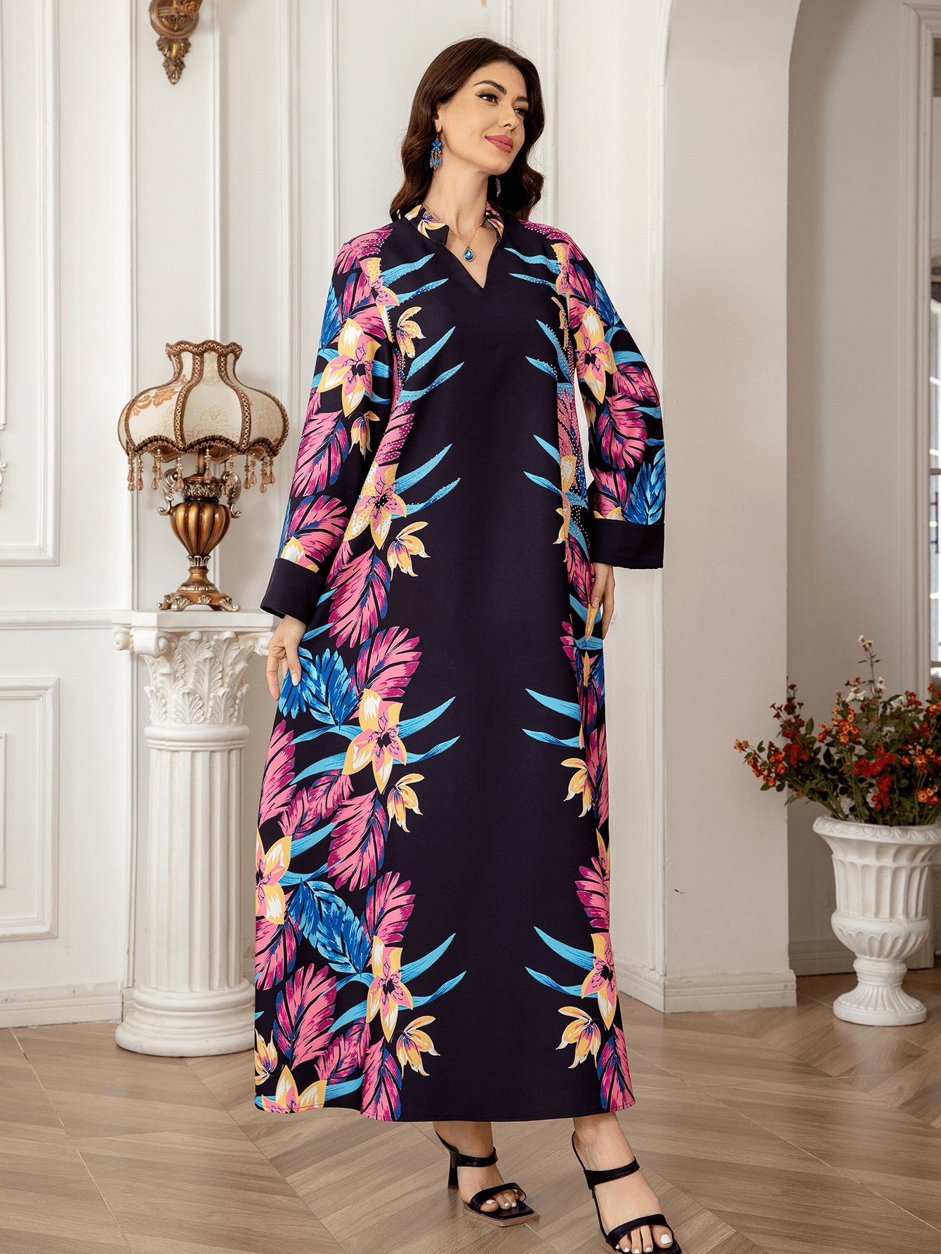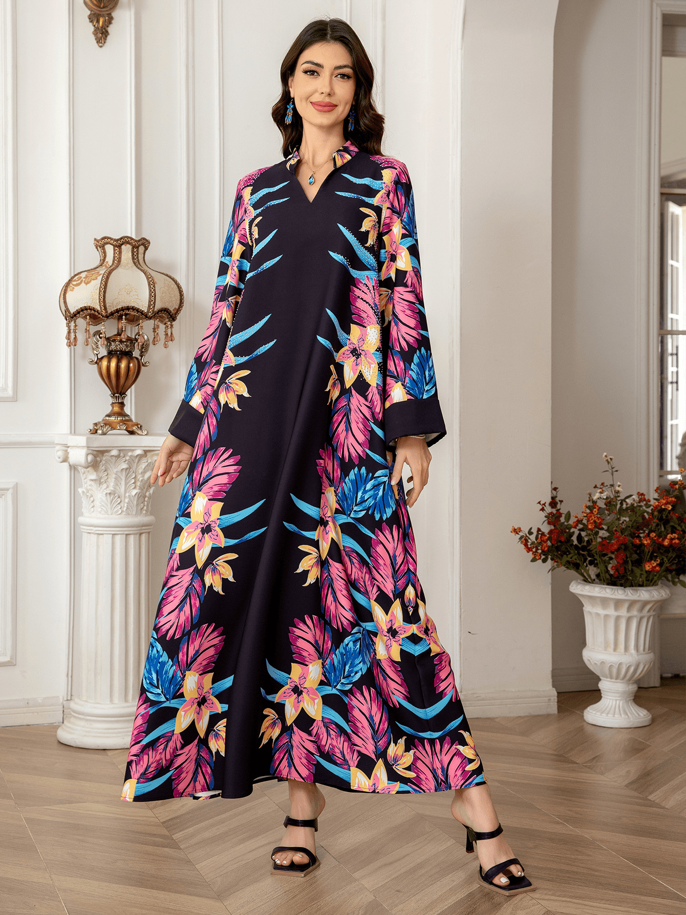 Абая, мусульманское платье-роба в ближневосточном стиле, женская одежда для мусульманок, с цветочным принтом, арабская роба