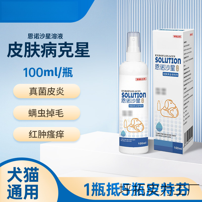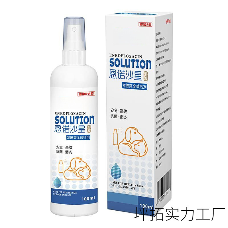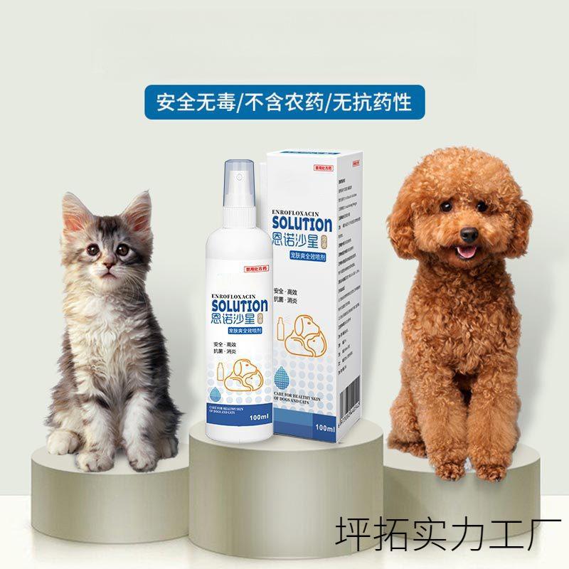 Энрофлоксацин 100 мл спрей для экстракорпоральных кожных заболеваний от котячьей пародонии, собачьей пародонии, перхоти, экземы волос, наружного применения