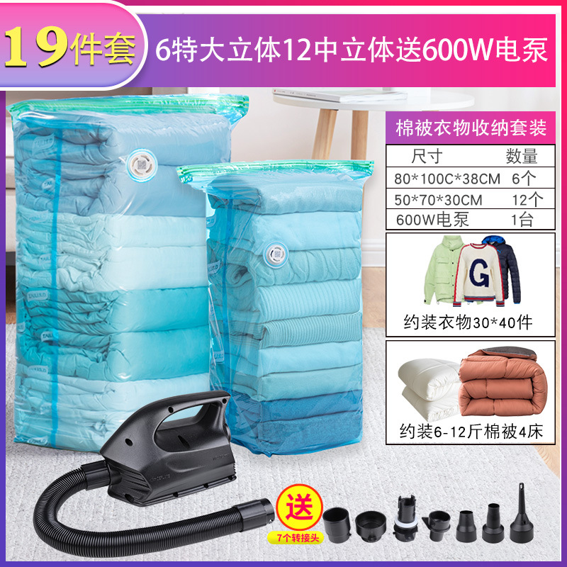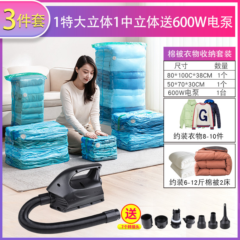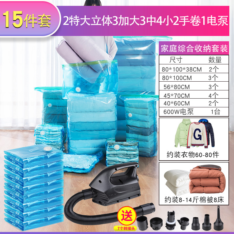 Многофункциональная модель надувного/вытяжного электрического насоса мощностью 600 Вт.; Набор из 3 предметов, включая (включая электрический насос мощностью 600 Вт), одеяло и место для хранения одежды.; Набор из 4 предметов (включая электрический насос мощностью 600 Вт), место для хранения одежды и подушек.; Набор из 7 предметов (включая электронасос мощностью 600 Вт), рекомендованный менеджером магазина.; Большой трехмерный набор из 6 предметов (включая электрический насос мощностью 600 Вт) для хранения одеял.; Роскошный набор из 19 предметов (включая электрический насос мощностью 600 Вт) с полным местом для хранения.; Классический синий набор из 5 предметов (включая электрический насос мощностью 600 Вт), место для хранения одежды и одеял.; Классический синий набор из 9 предметов (включая электрический насос мощностью 600 Вт), место для хранения одежды и одеял.; Классический синий набор из 15 предметов (включая электрический насос мощностью 600 Вт) с полным местом для хранения.