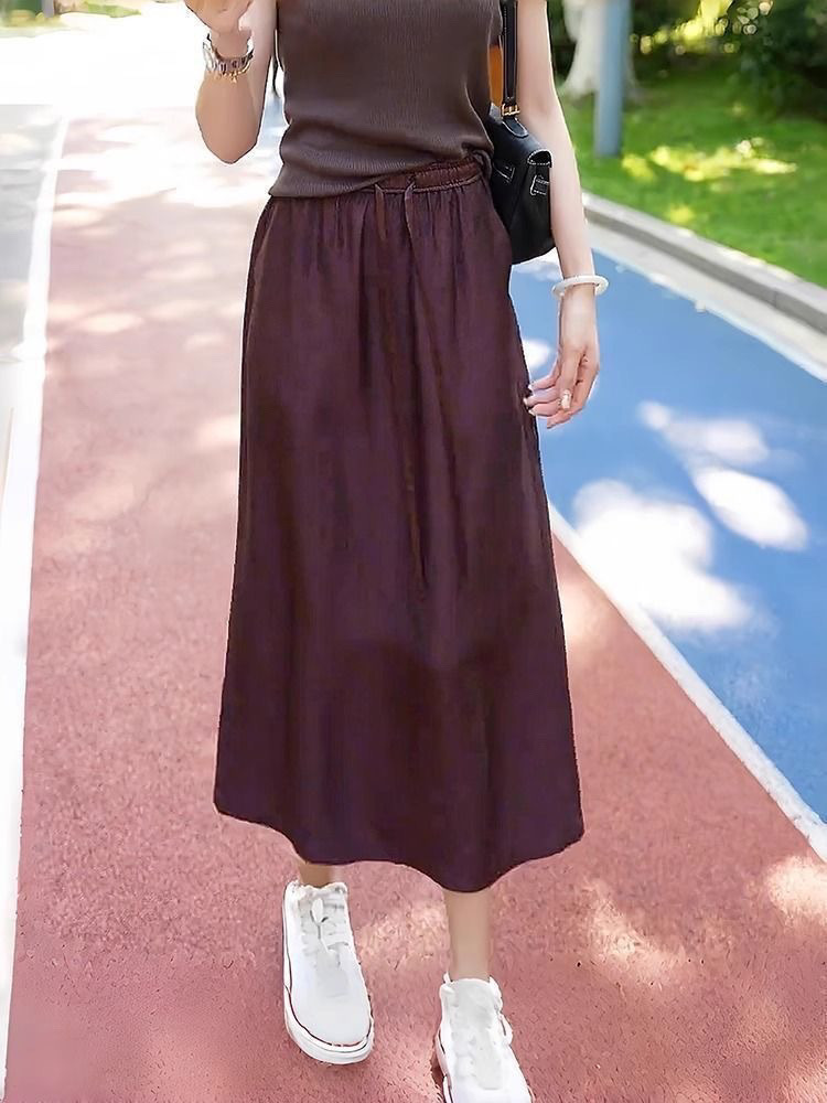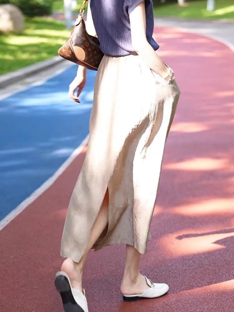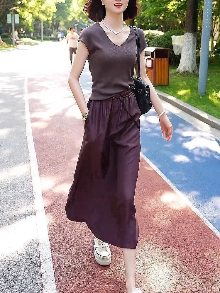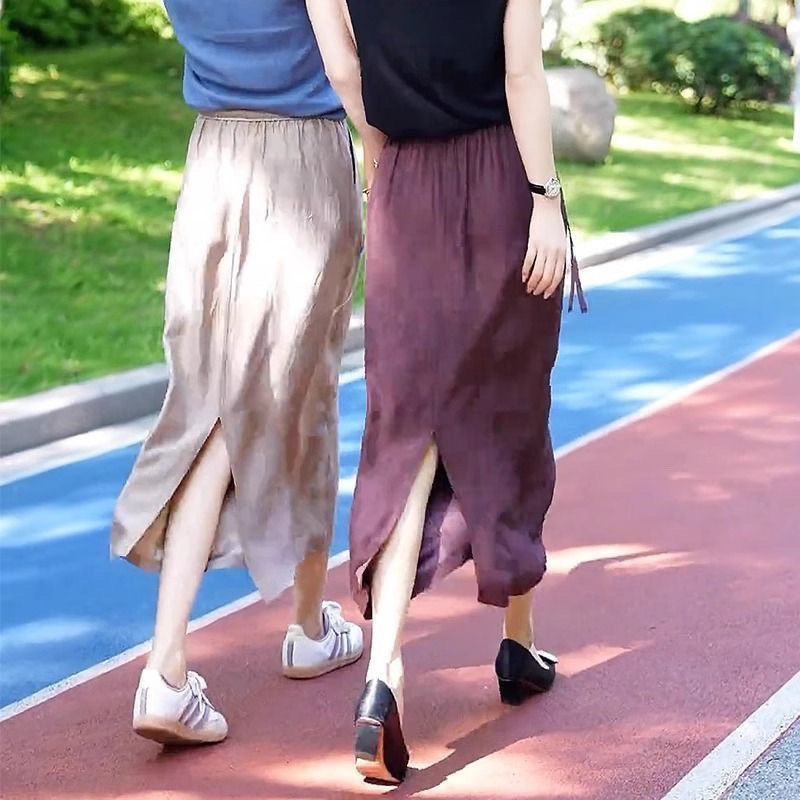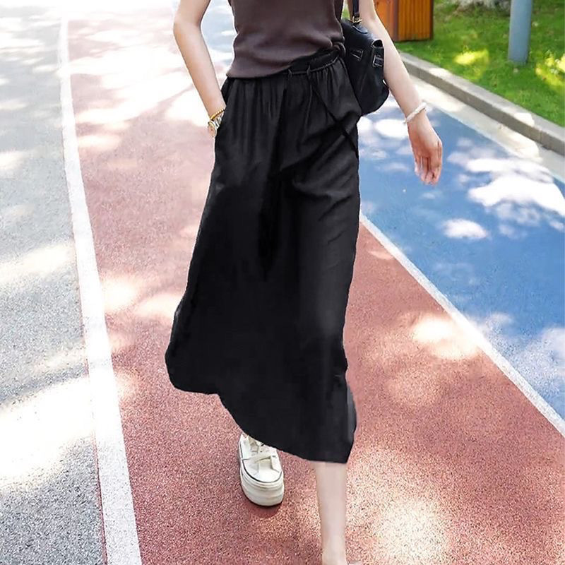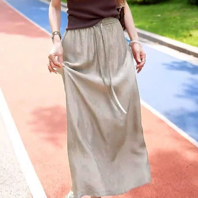 Ацетатная атласная юбка на шнуровке, новинка лета 2024, тонкая утягивающая юбка с высокой талией и драпировкой