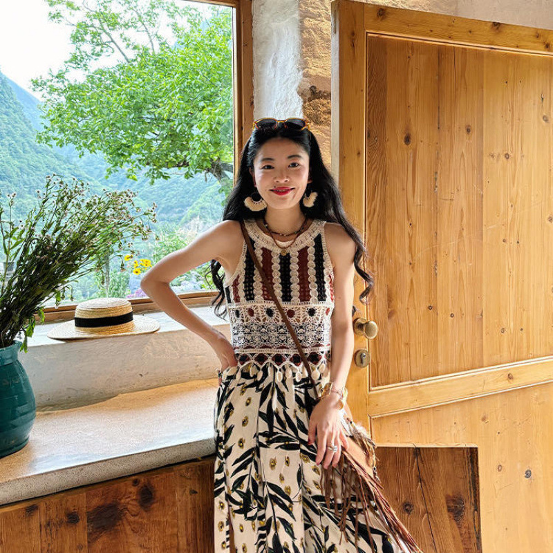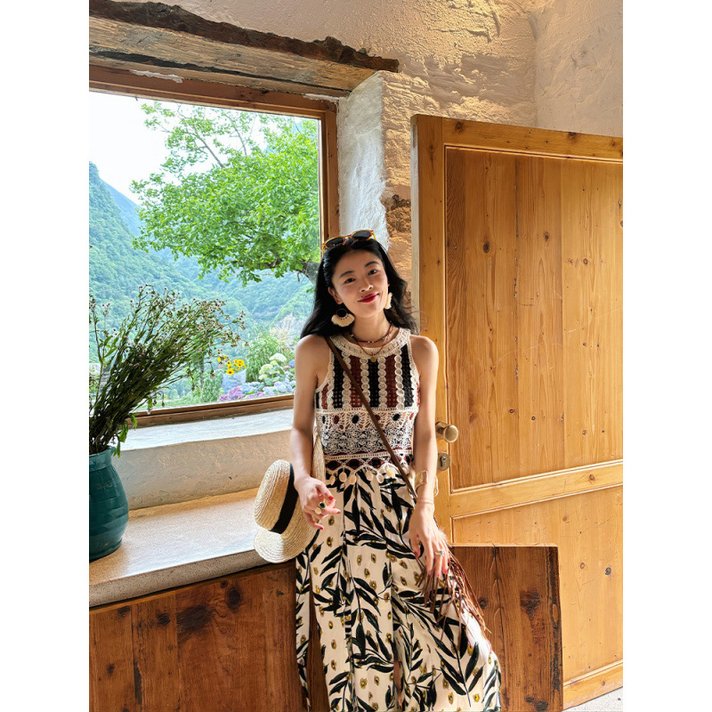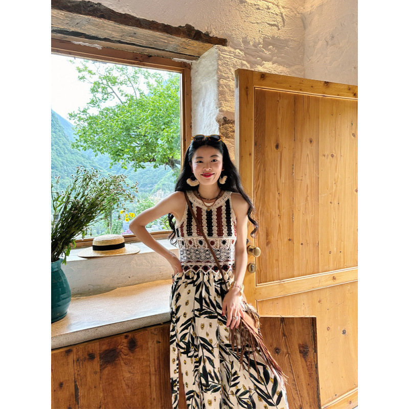 Богемный вязаный жилет с кисточками, женский универсальный жилет с круглым вырезом, верхняя одежда в стиле ретро, этнический топ на подтяжках