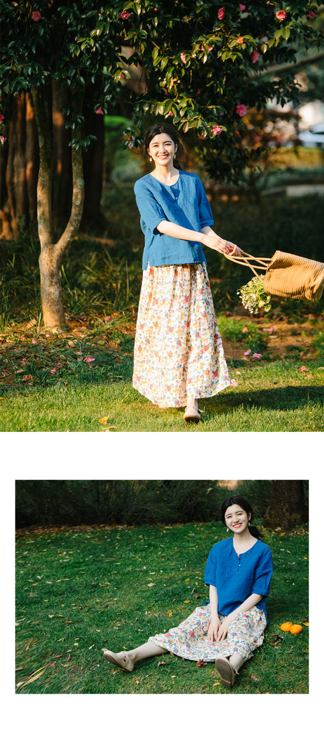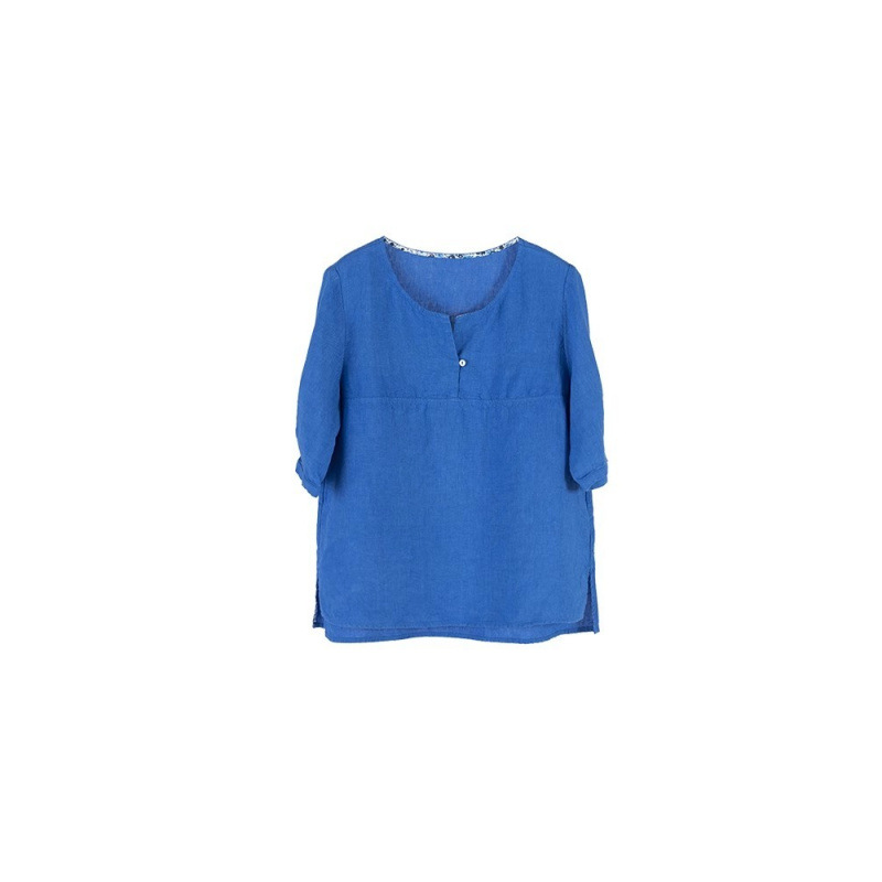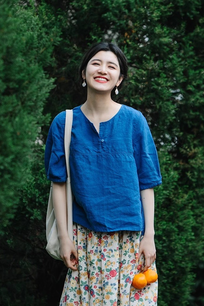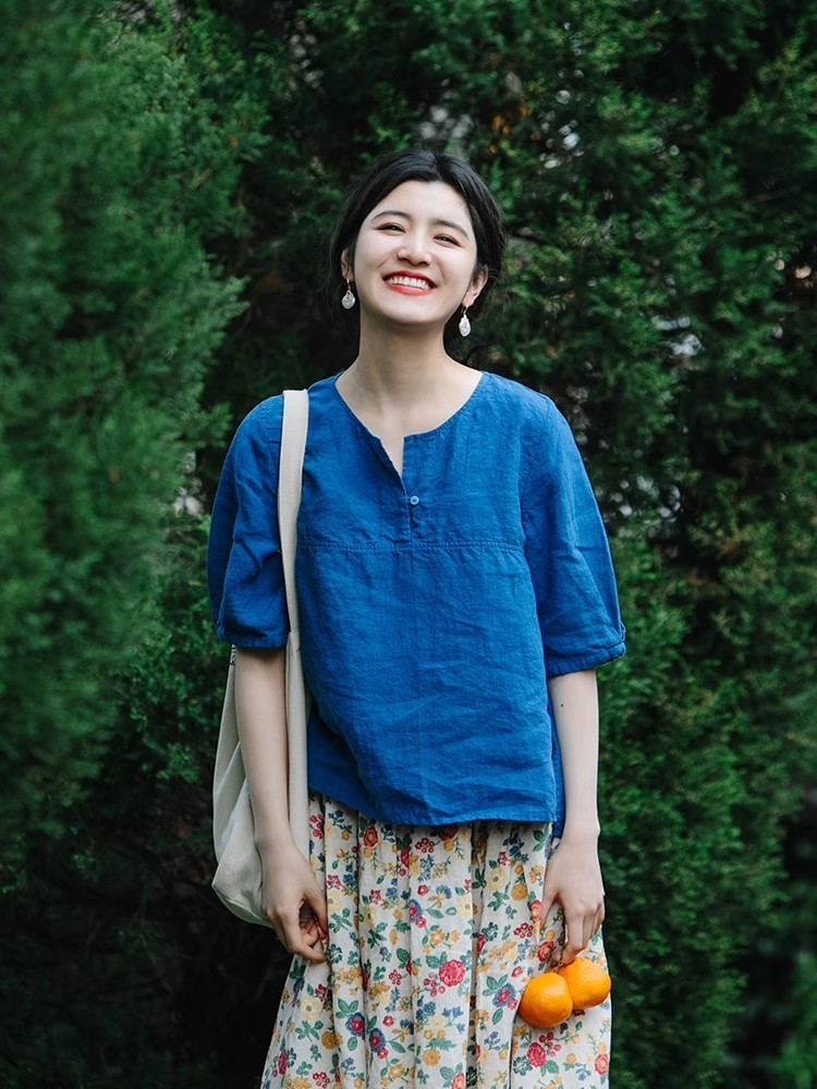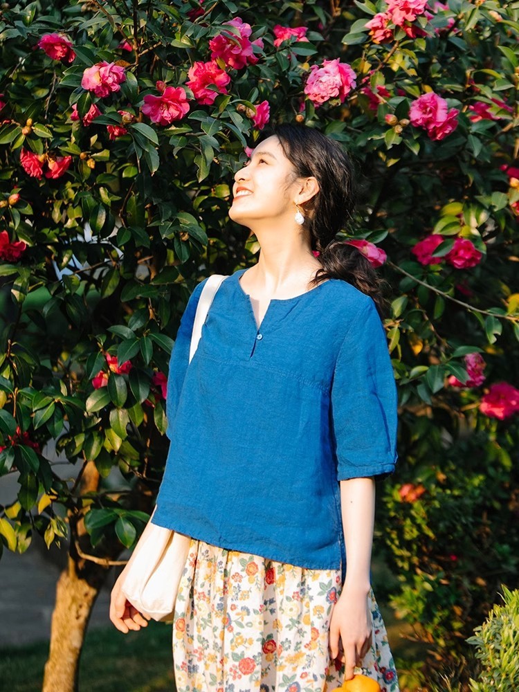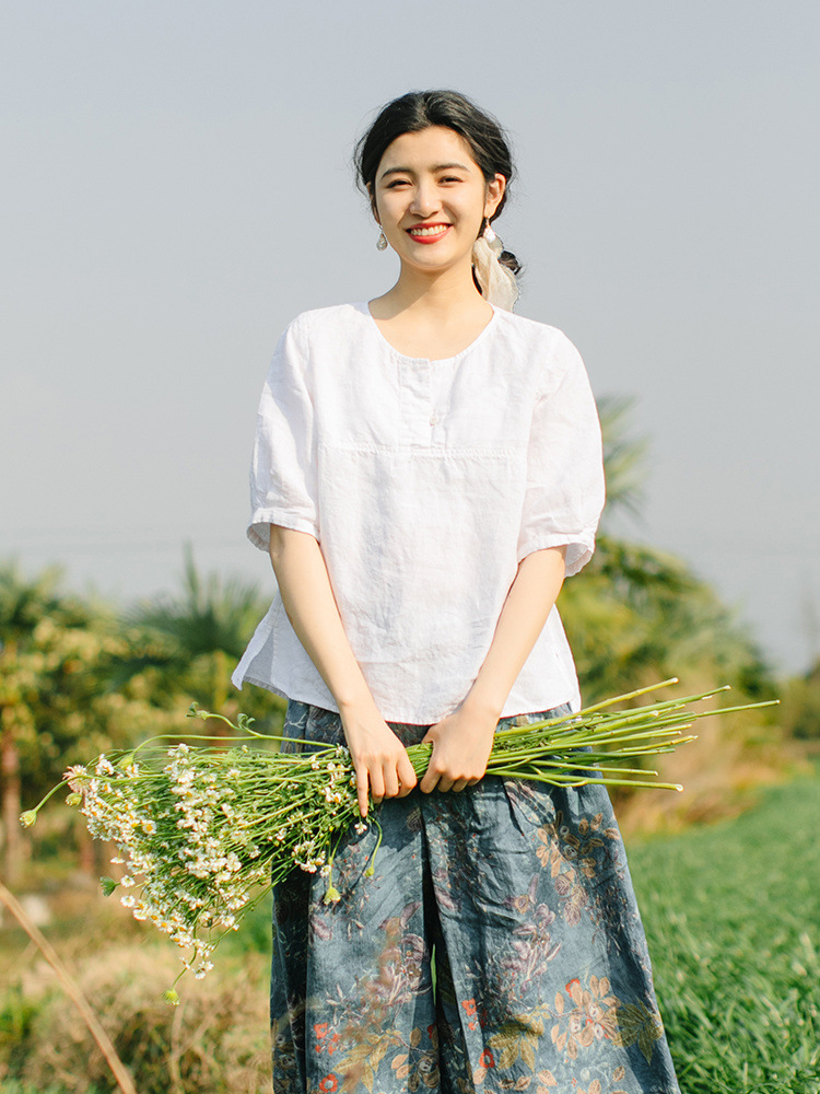 Женская хлопковая рубашка в ретро стиле, однотонная, летняя, тонкая, с круглым вырезом, свободного кроя, из хлопка и льна, 2025 года.