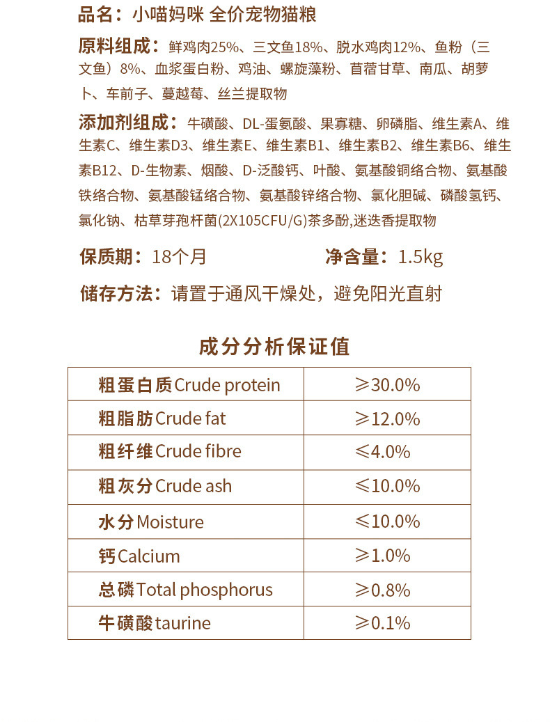 Корм для взрослых кошек Little Meow Mommy, 1.5kg г, нейтральный корм для набора веса, закуски для котят от 1 до 12 месяцев, подходит для всех размеров и не вызывает выпадения волос
