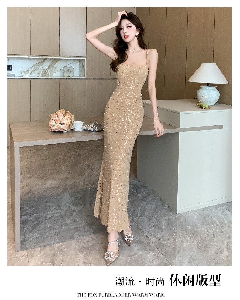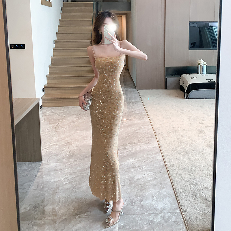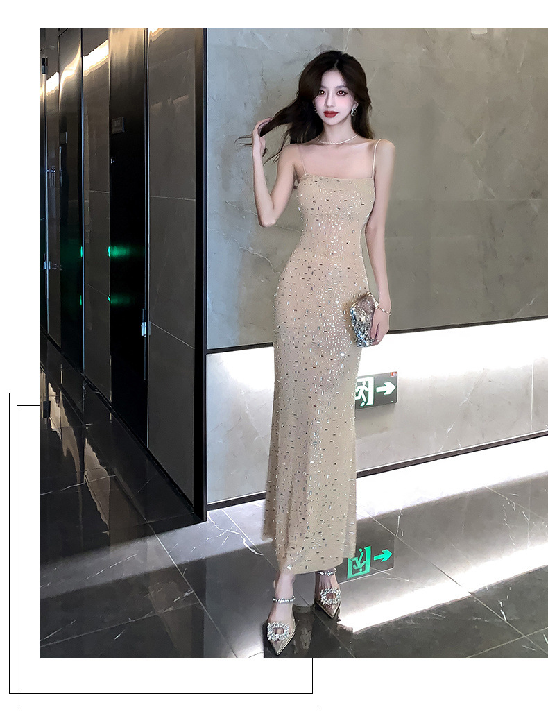 Роскошное платье-комбинация с кристаллами для светских мероприятий, элегантное женское платье 2024, весеннее высококлассное облегающее длинное платье.
