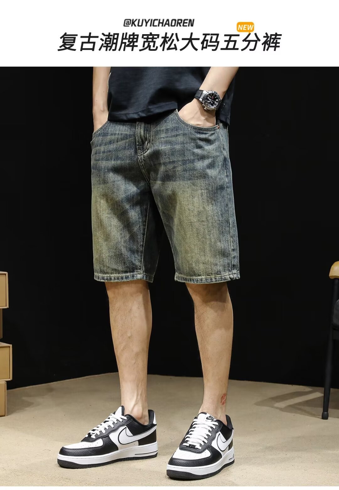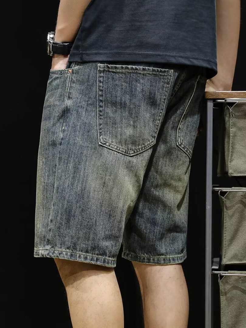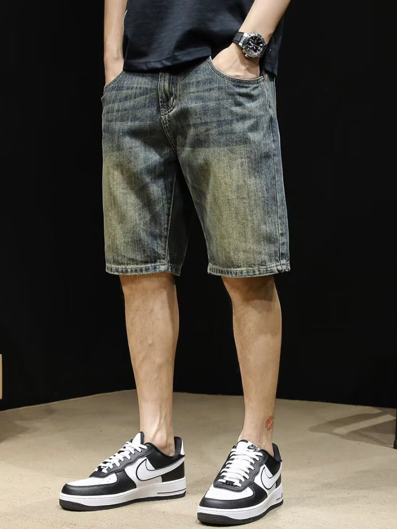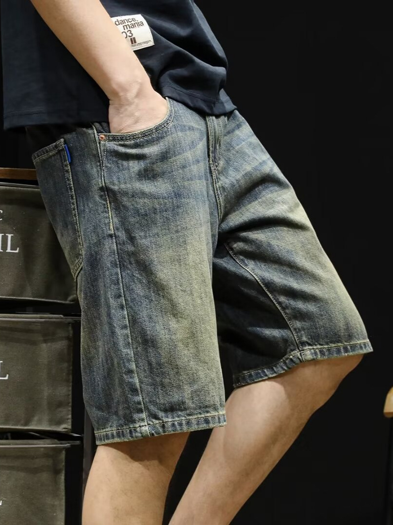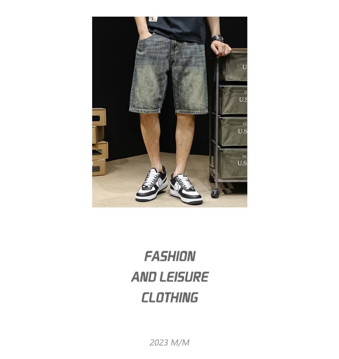 Винтажные джинсовые шорты, мужские шорты до колена, летние модные брендовые шорты 2024 года, новые свободные мужские шорты средней длины больших размеров
