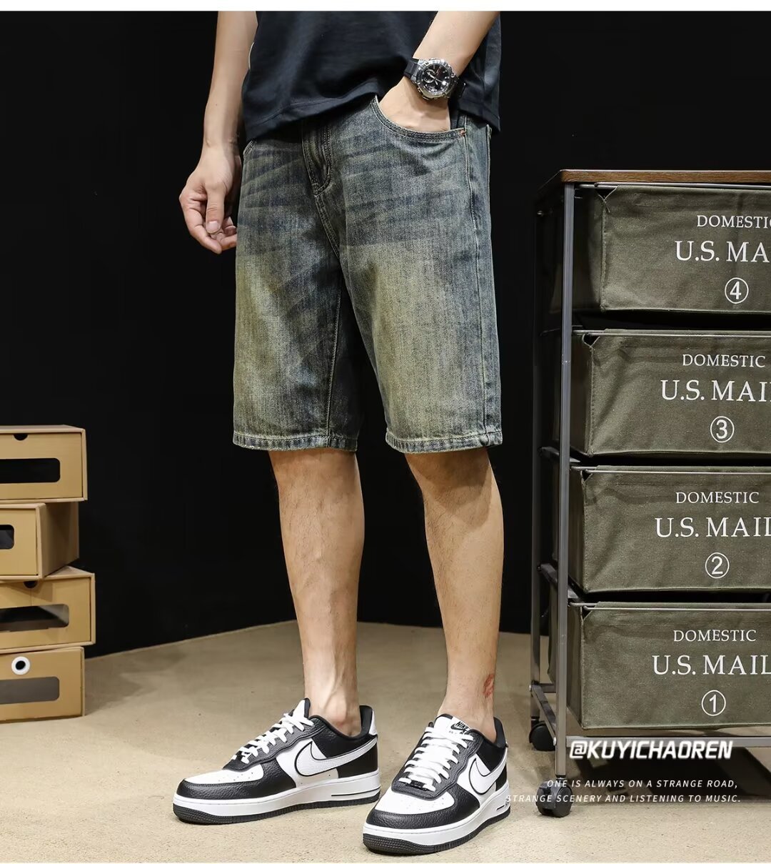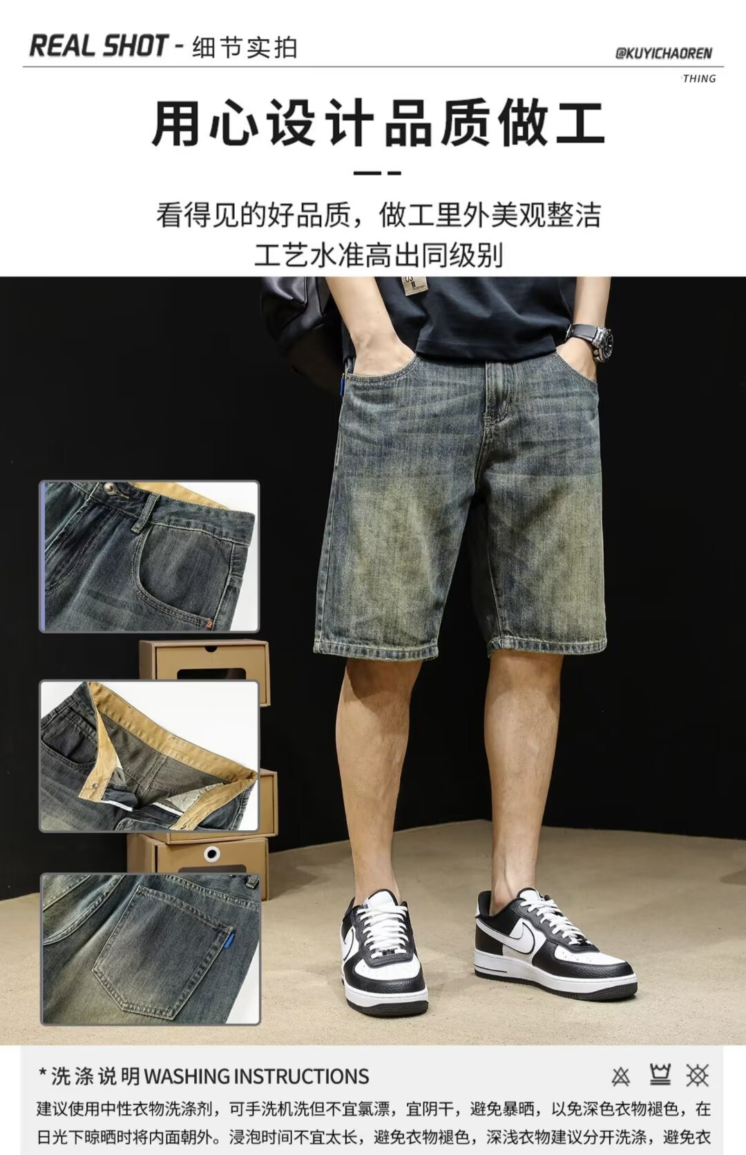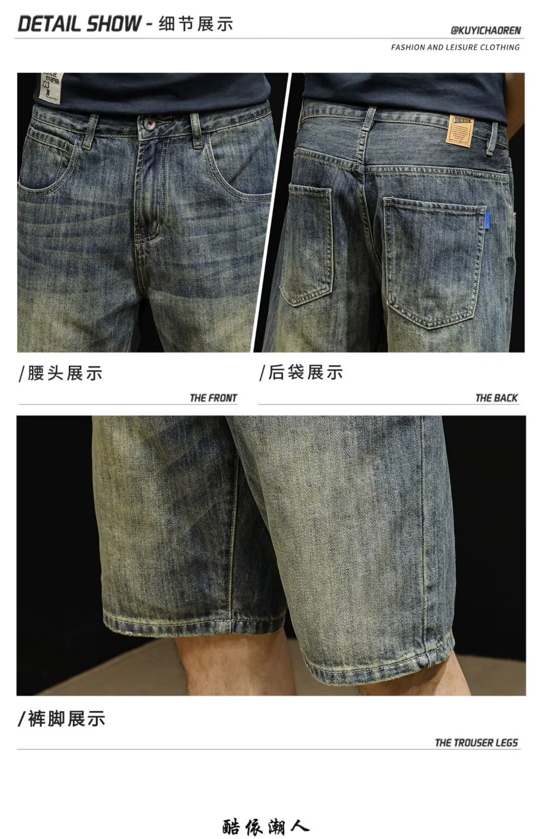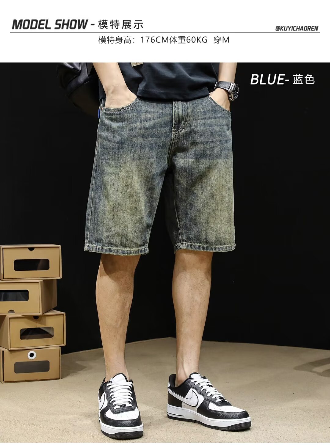 Винтажные джинсовые шорты, мужские шорты до колена, летние модные брендовые шорты 2024 года, новые свободные мужские шорты средней длины больших размеров