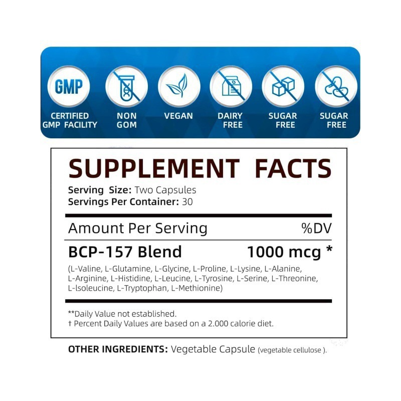 Трансграничный экспорт BPC-157 60 капсул для поддержки мышц и восстановления после тренировок, производство на заводе.