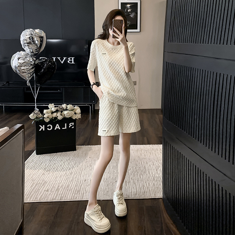 2025 новый летний спортивный костюм для женщин, модный и стильный европейский комплект из шорт с коротким рукавом