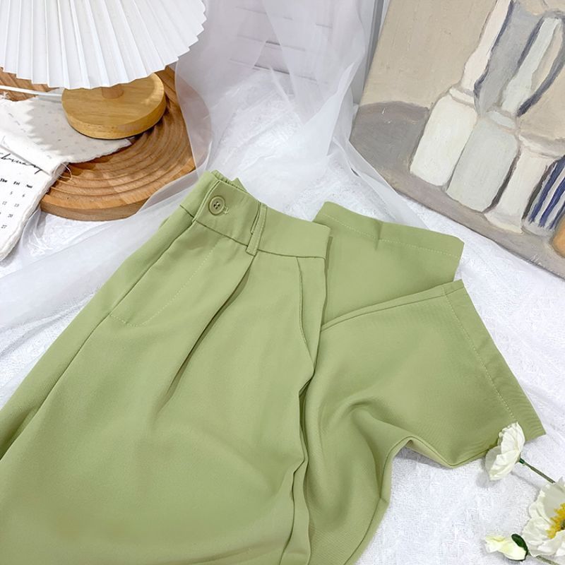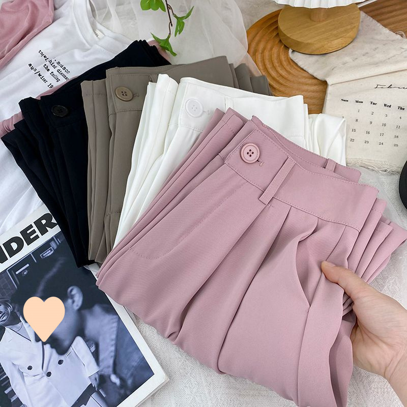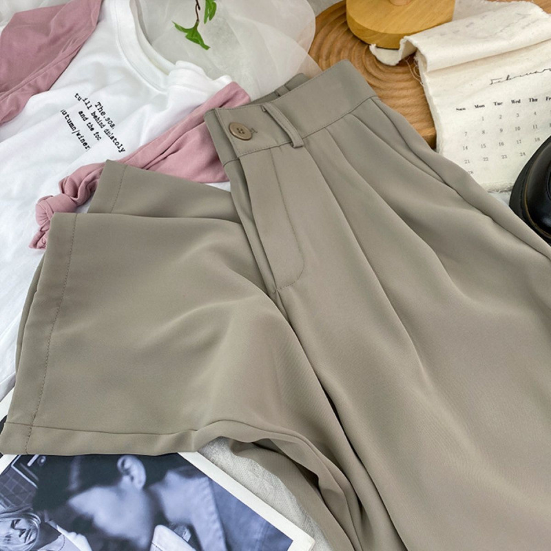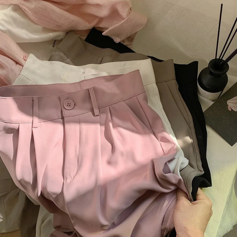 Женские костюмные брюки 2025, весенне-летние новые утягивающие свободные брюки-сигареты из ледяного шелка с высокой талией, укороченные повседневные классические брюки прямого кроя