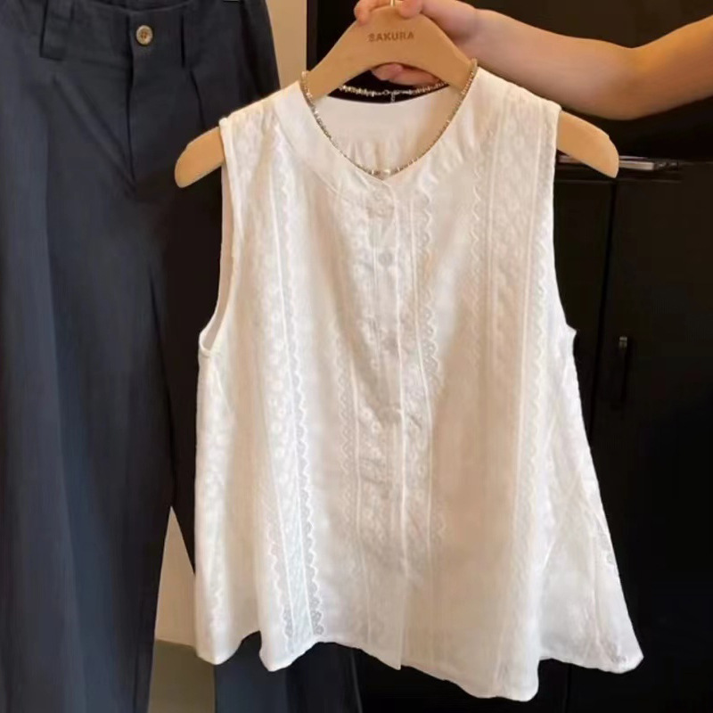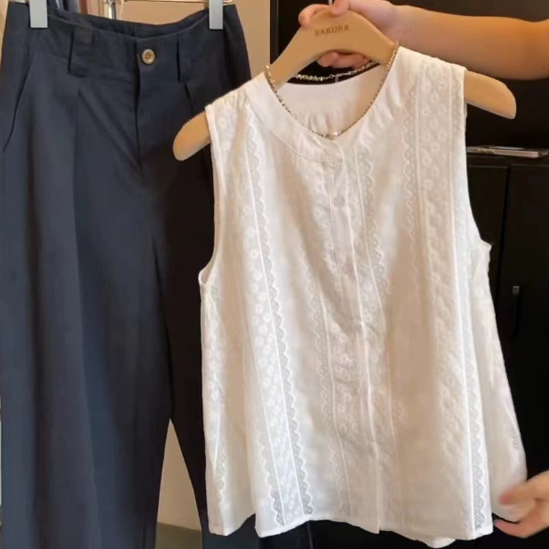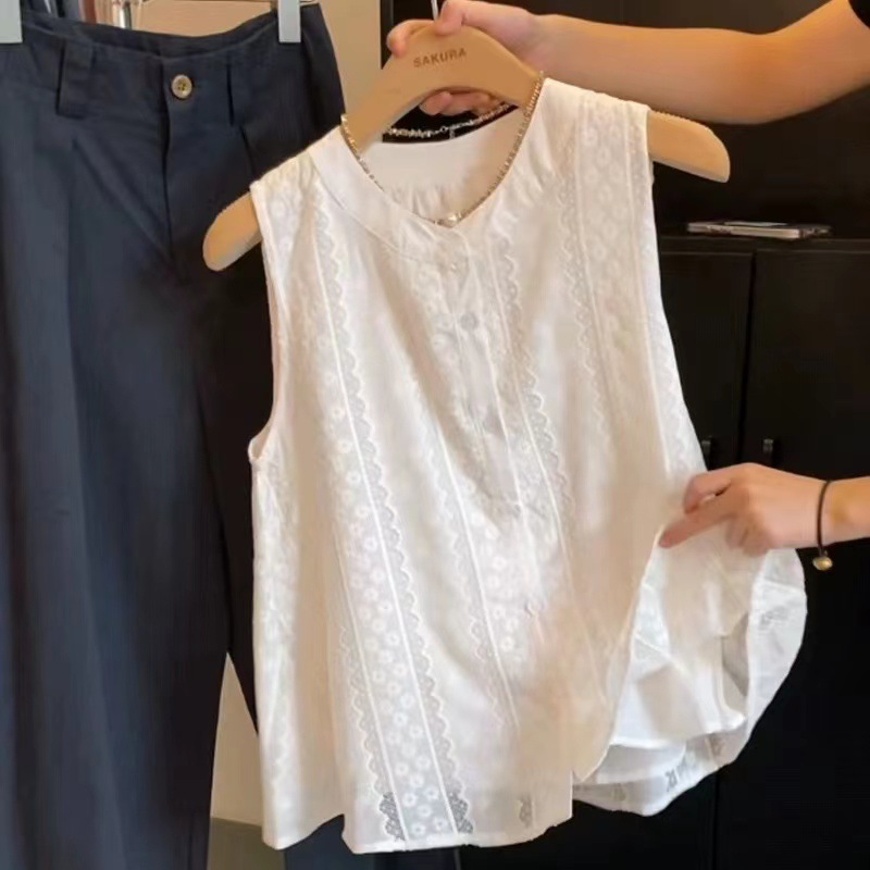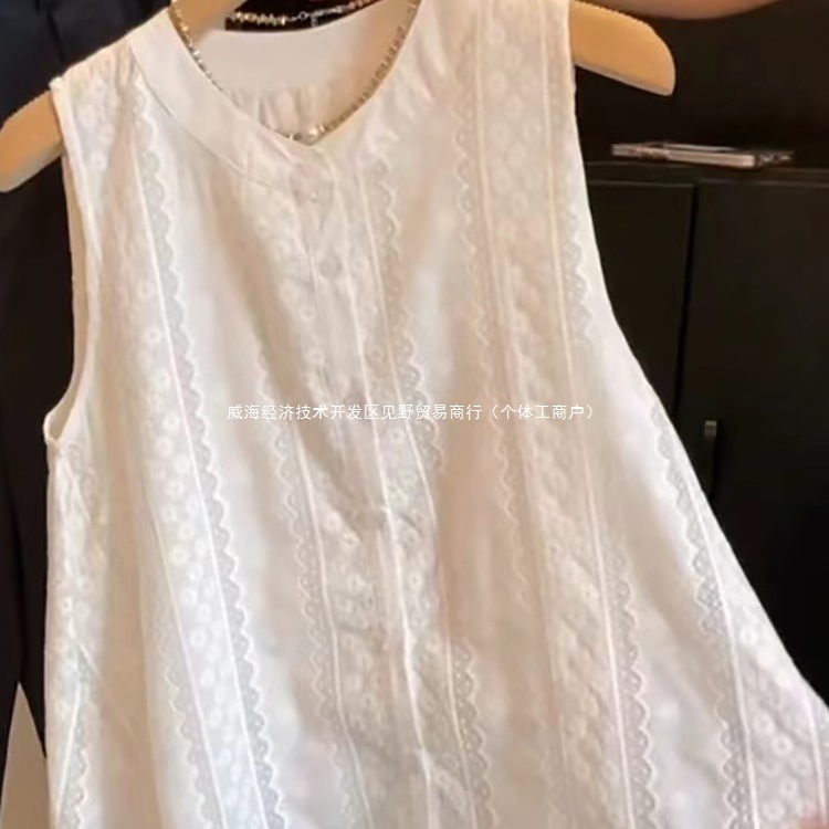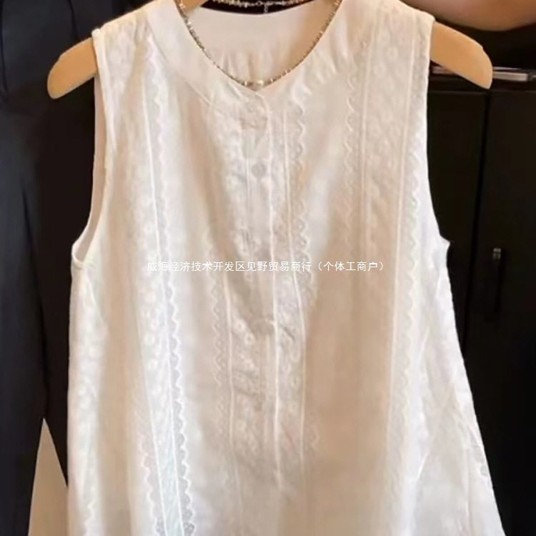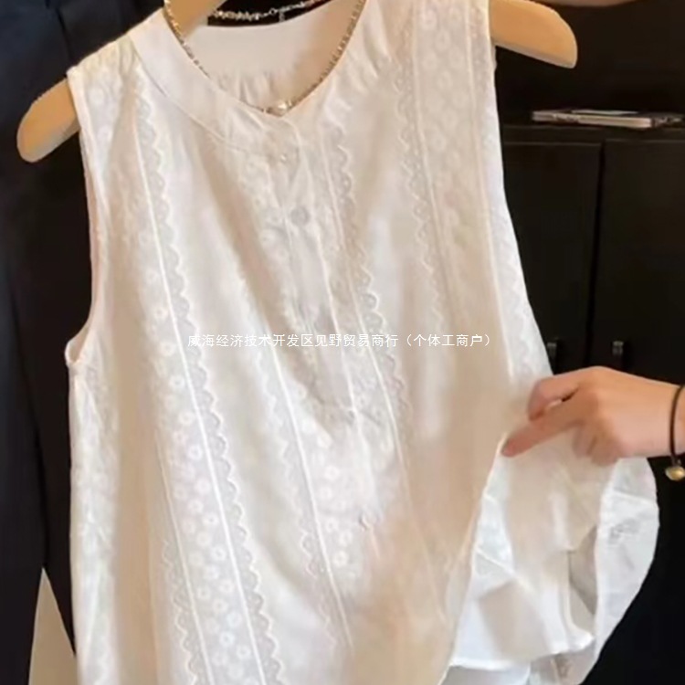 Рекомендуется для самостоятельного ношения ~ белая безрукавка с французской кружевной вышивкой для женщин, летняя новинка 2025 года, свободный топ