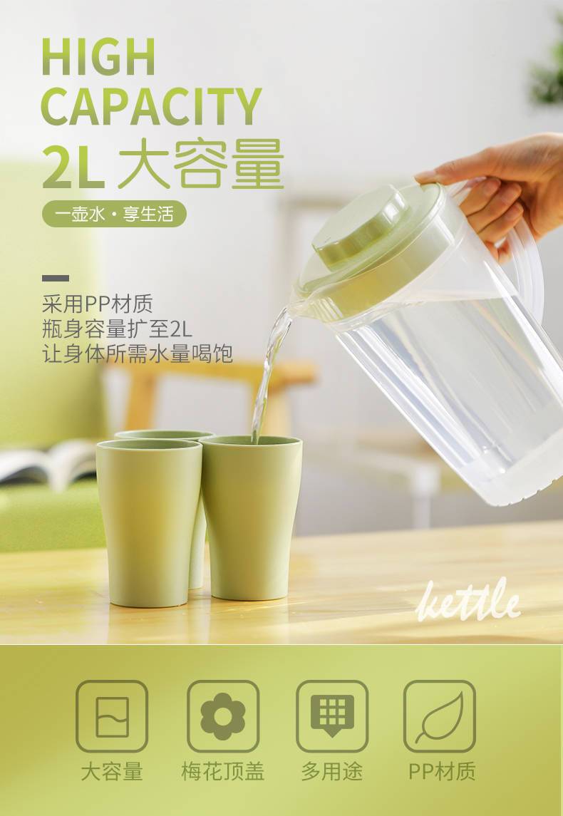 Чайник для холодной воды, пластиковый, устойчивый к высоким температурам, чайник для холодной воды, бытовой, большой емкости, набор чашек для холодной воды, чайник для холодной воды, чайник для сока, чай