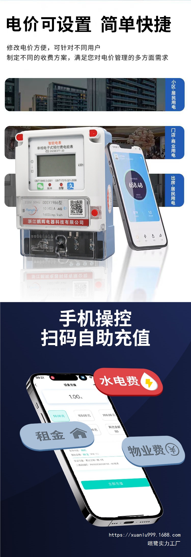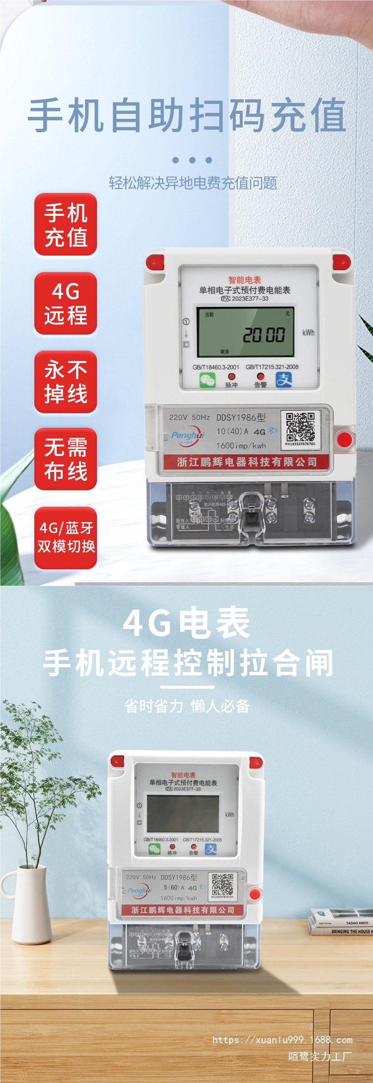 Мобильный телефон сканирует код, перезаряжает Bluetooth-счетчик электроэнергии, 4G, умный счетчик электроэнергии, удаленный предоплаченный счетчик, аренда дома, высокая точность