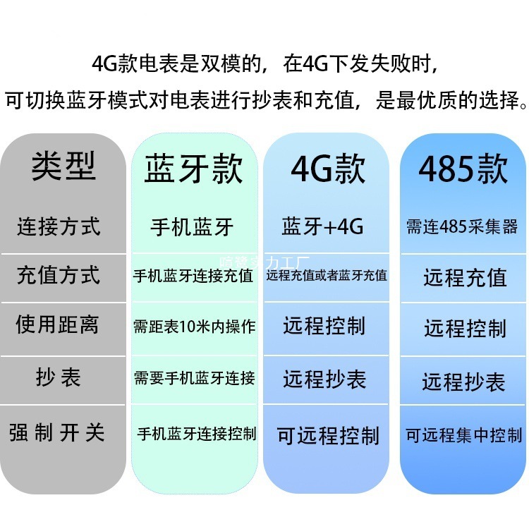 Bluetooth-счетчик предоплаты 5(60)А; Bluetooth-счетчик электроэнергии с предоплатой 10(100)А; Предоплаченный счетчик 4G 5(60)А; Предоплаченный счетчик 4G 10(100)А; 485 предоплата счетчик 5(60)А; 485 счетчик электроэнергии предоплата 10(100)А; Счетчик холодной воды Bluetooth DN15 (4 ответвления); Счетчик холодной воды Bluetooth DN20 (6 ответвлений); Bluetooth-счетчик горячей воды DN15 (4 ответвления); Bluetooth-счетчик горячей воды DN20 (6 ответвлений)