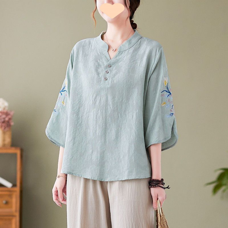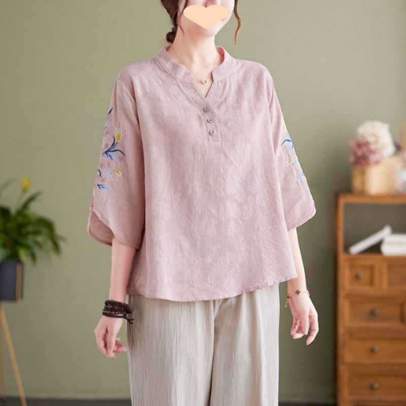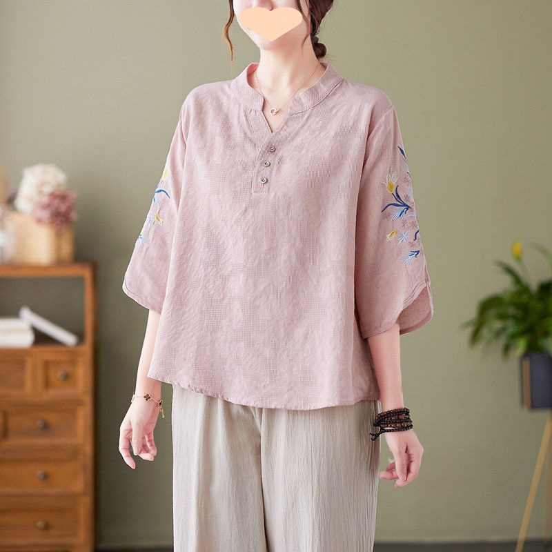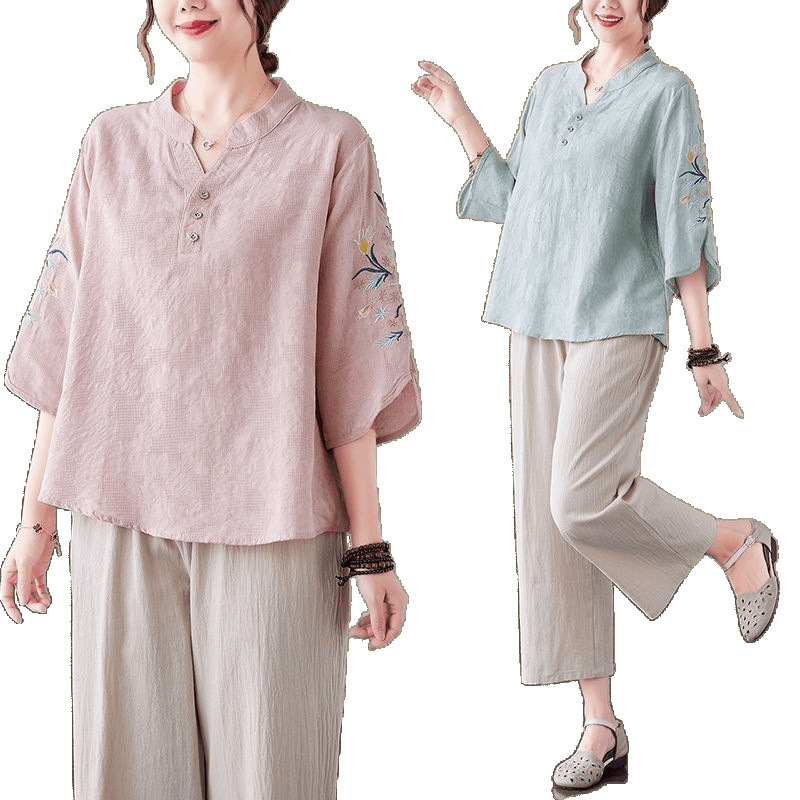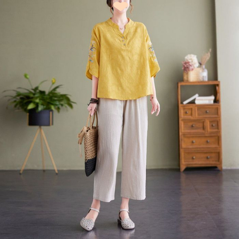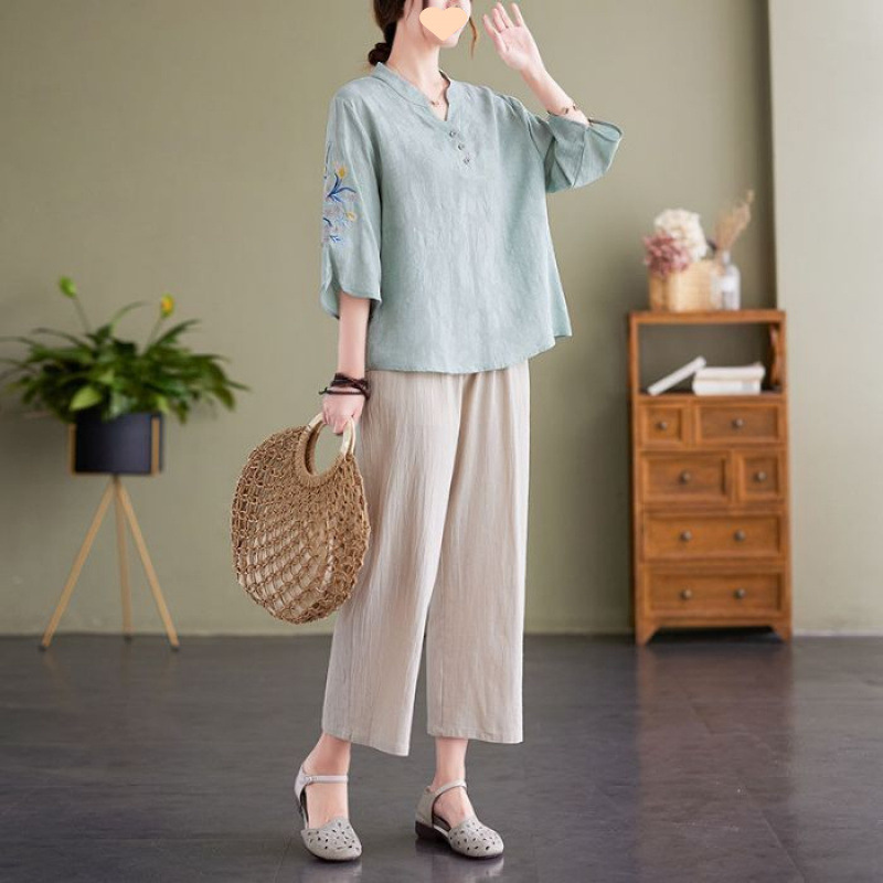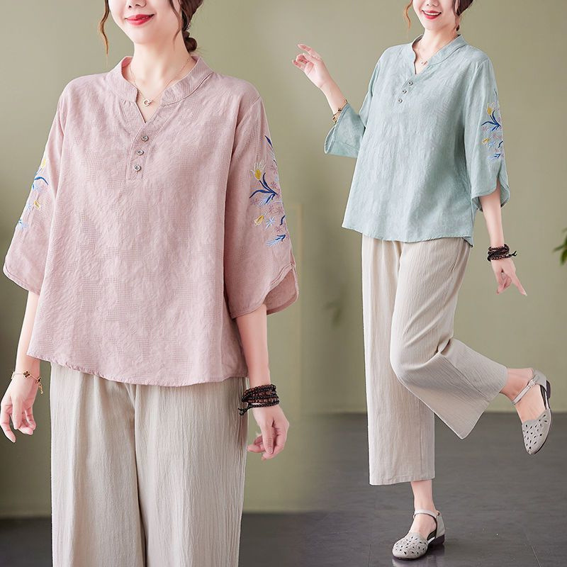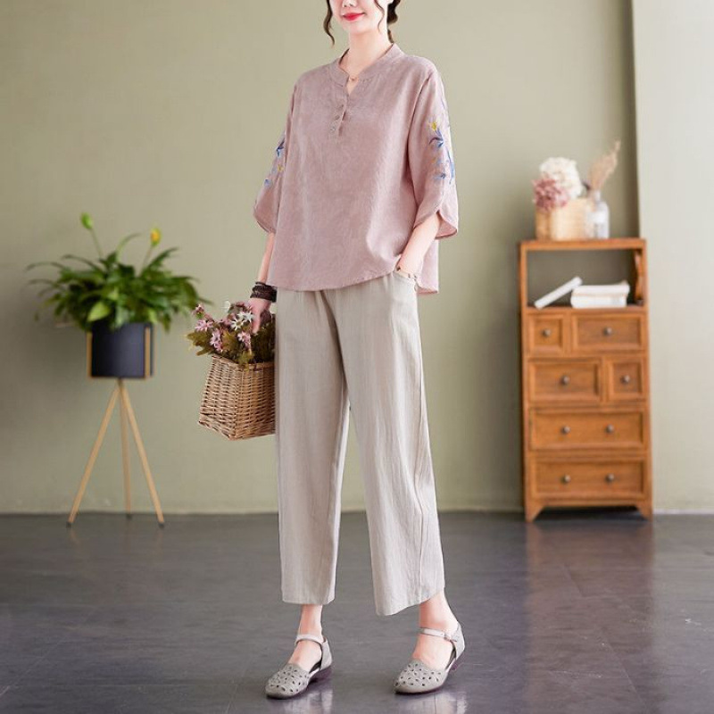 Модные топы и брюки из хлопка и льна для мам среднего и пожилого возраста, костюмы-двойки, новая летняя свободная женская одежда больших размеров