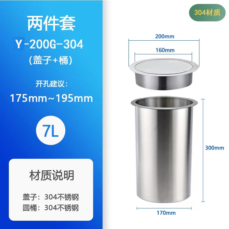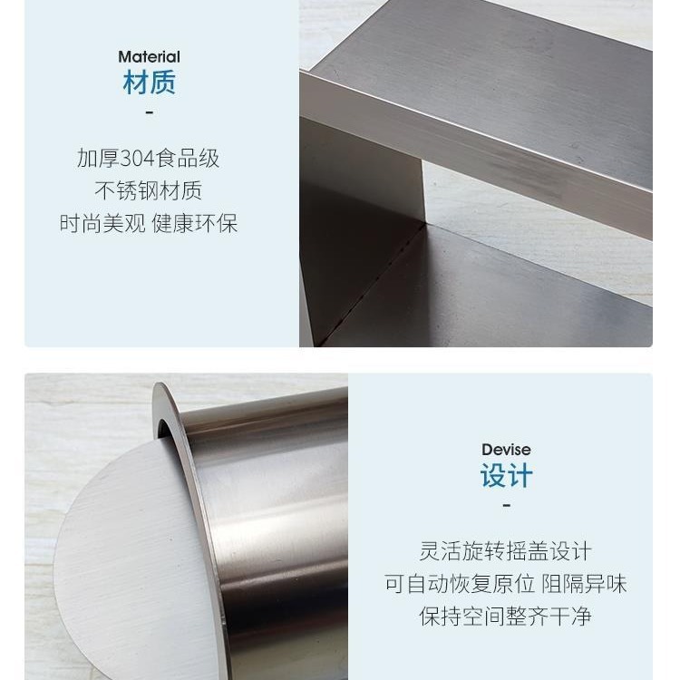 Встраиваемая мусорная корзина из нержавеющей стали, декоративная крышка для столешницы, откидная крышка 304, круглый вход для измельчителя мусора