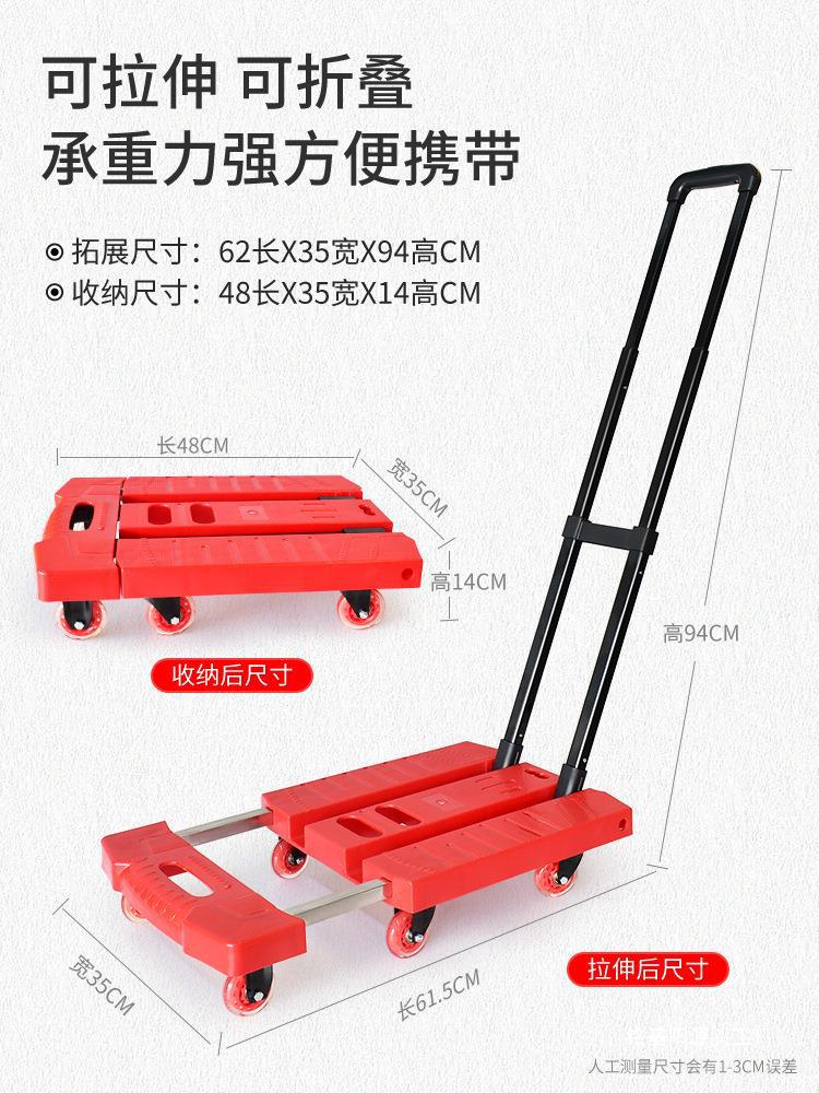 Складная портативная телескопическая ручная тележка для домашнего использования, плоская ручная тележка, грузовой небольшой прицеп