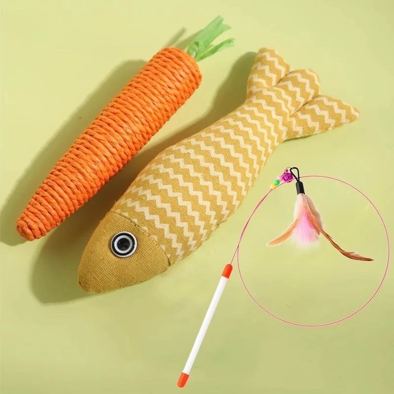 Набор из 5 предметов [репа + рыба + коренные зубы + 2 бумажных шарика]; Набор из трех предметов [рыба + рыба + палочка для дразнения кошек]; Набор из двух предметов [рыба + редис]; Набор из двух предметов [рыба + забавная палка для кошки]; 1 бумажный шарик; Рыба + редька + мышь в клетке