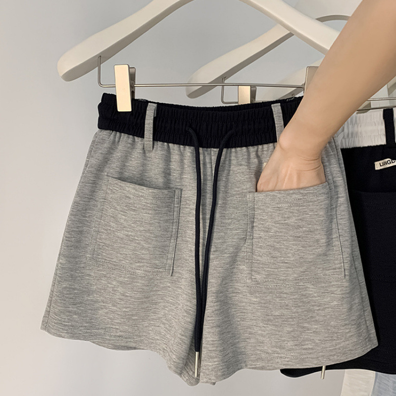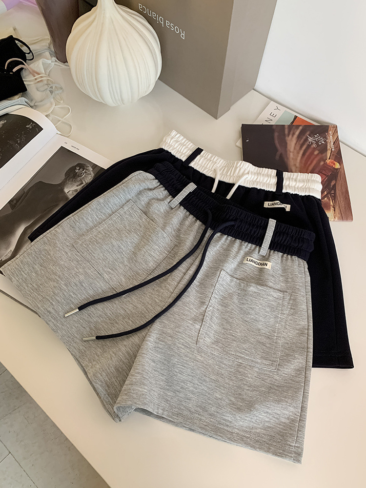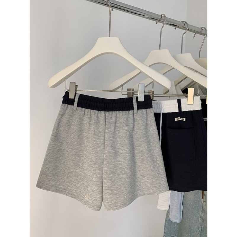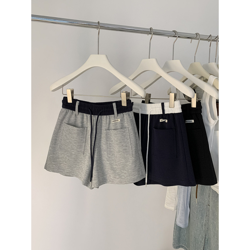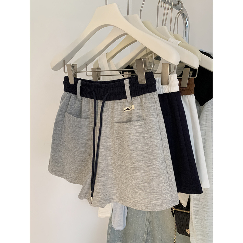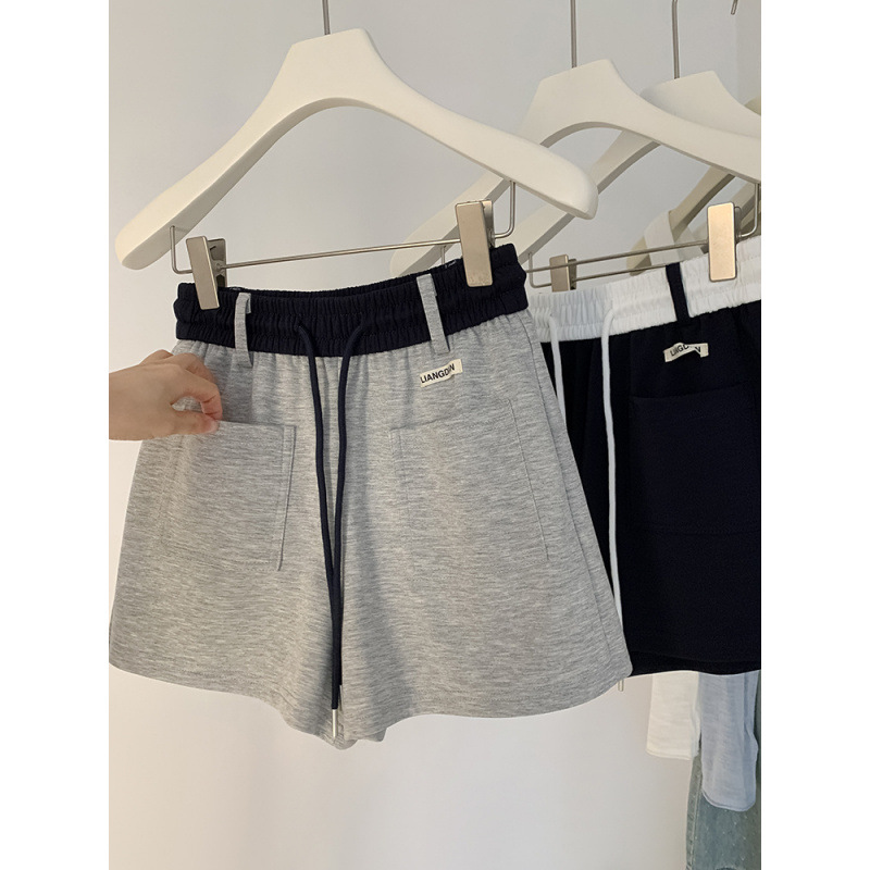 Серые повседневные спортивные штаны, лето 2024, новые свободные шорты для фитнеса с высокой талией контрастного цвета и шнурком, спортивные шорты