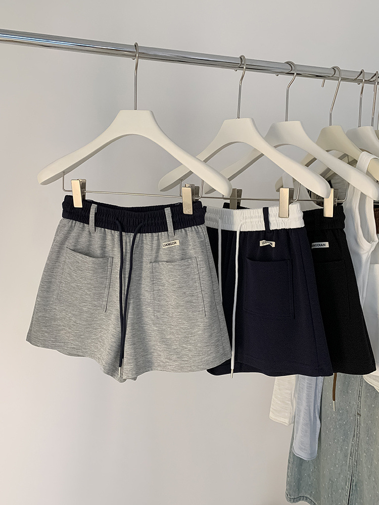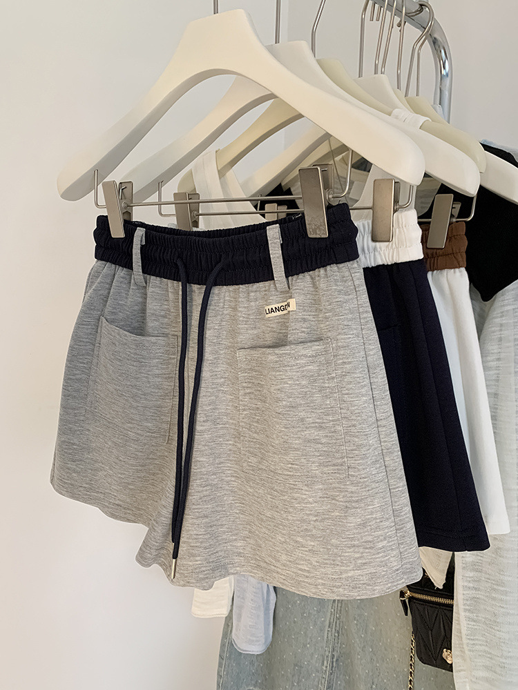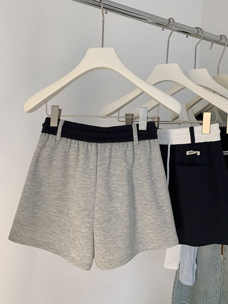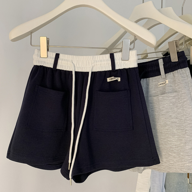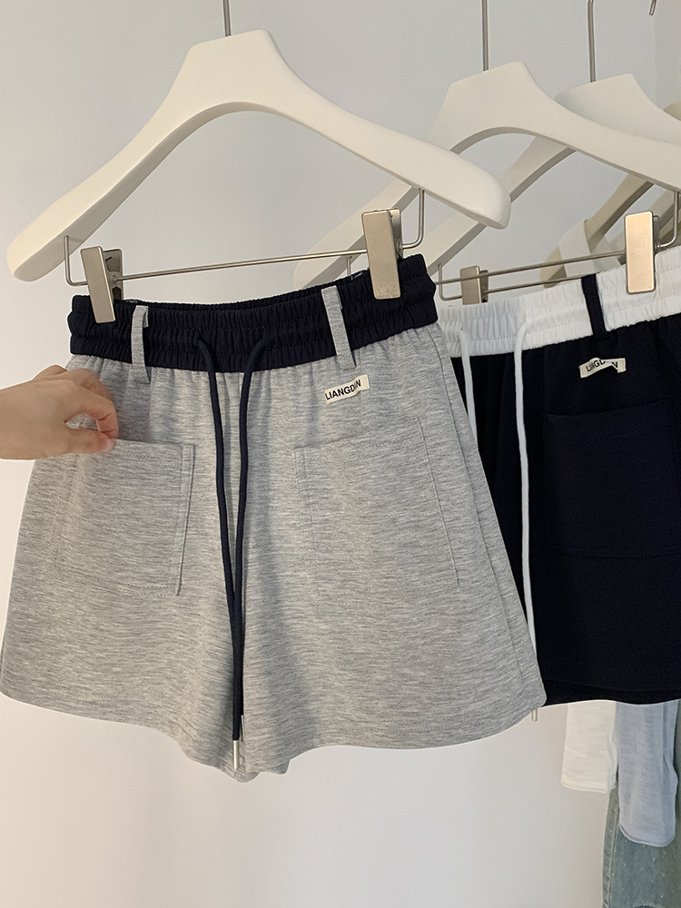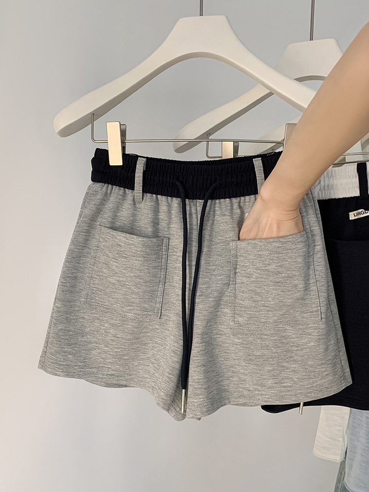 Серые повседневные спортивные штаны, лето 2024, новые свободные шорты для фитнеса с высокой талией контрастного цвета и шнурком, спортивные шорты