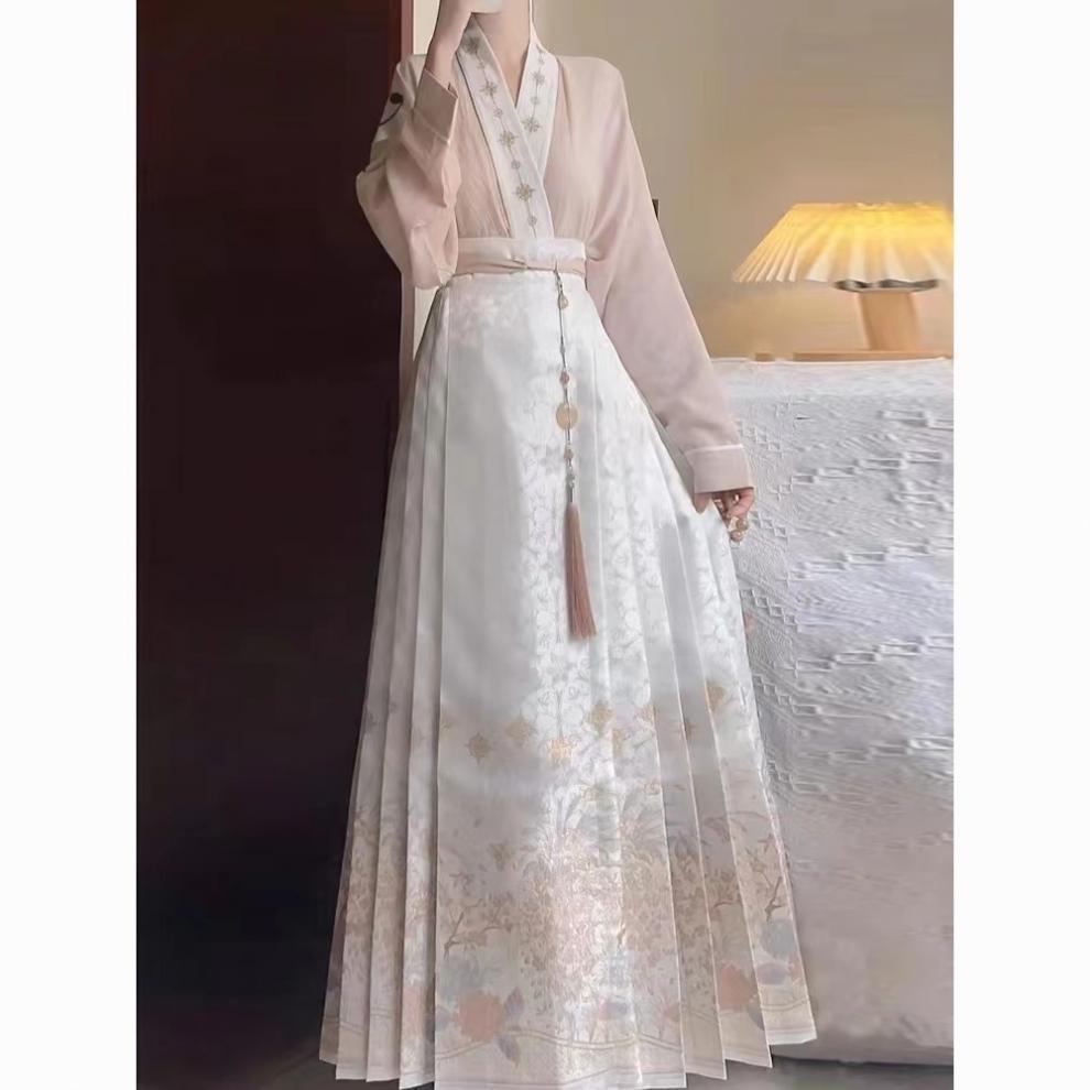 Новый комплект ханьфу в китайском стиле династии Мин с жаккардовым принтом, летний тонкий модифицированный повседневный комплект из двух предметов для взрослых.