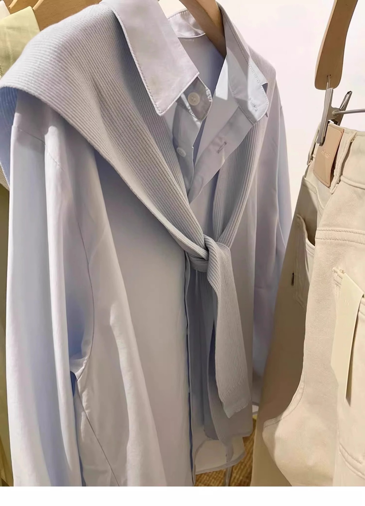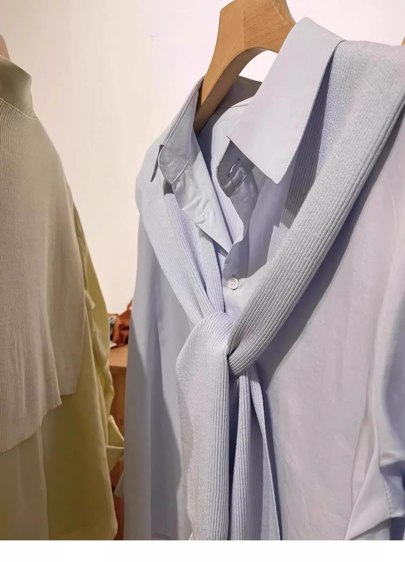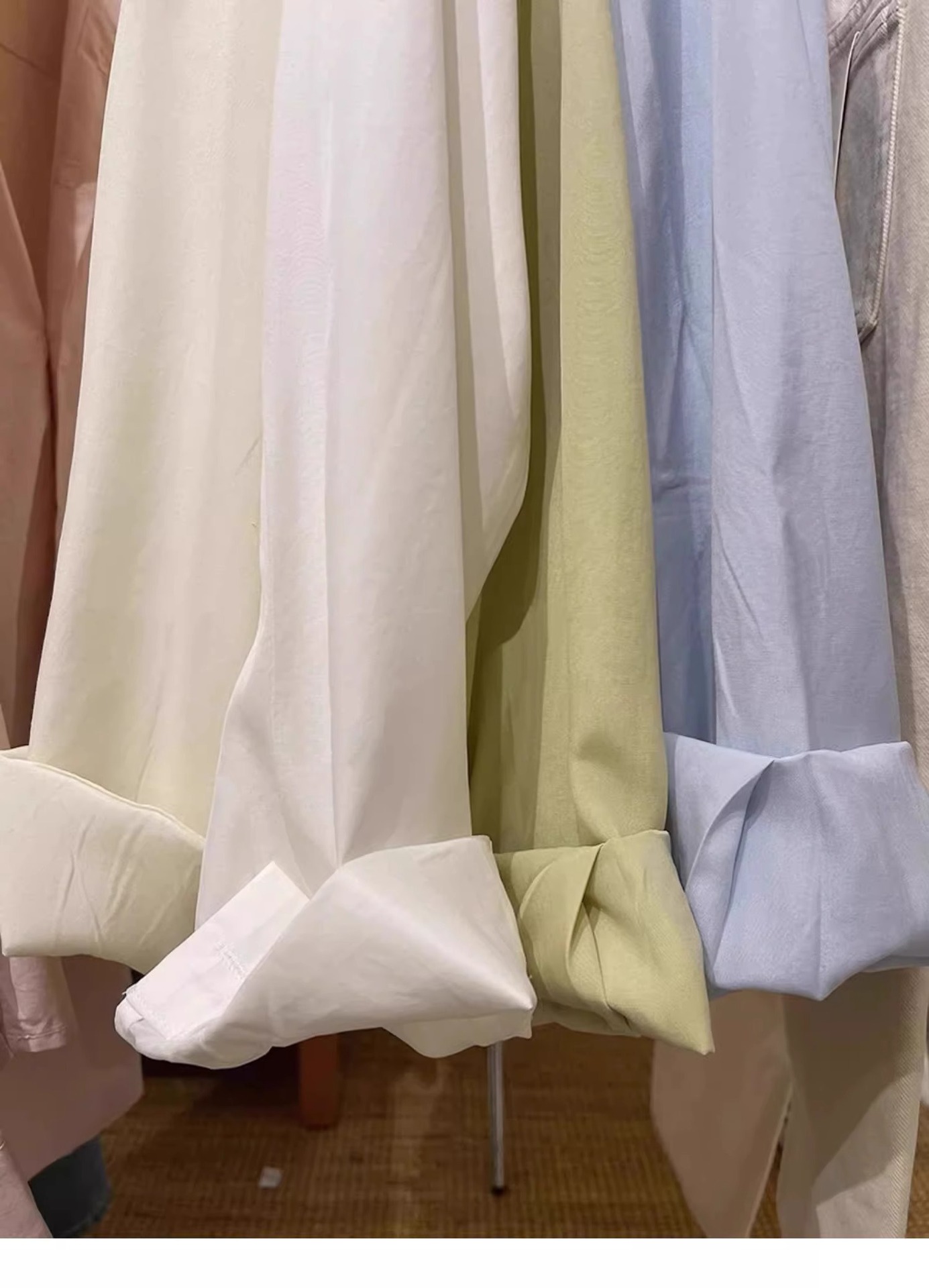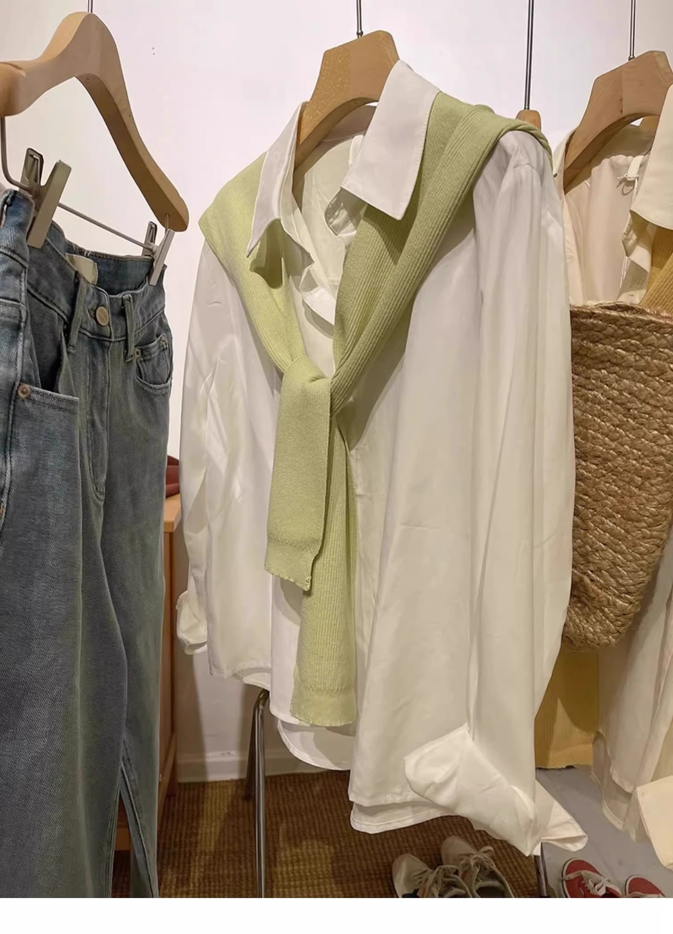 Гусиный желтый [отдельная рубашка]; Белый [отдельная рубашка]; Зеленый [отдельная рубашка]; Синий [отдельная рубашка]; Гусиная желтая рубашка + гусиная желтая шаль; Белая рубашка + темно-зеленая шаль.; Зеленая рубашка + белая шаль; Синяя рубашка + синяя шаль