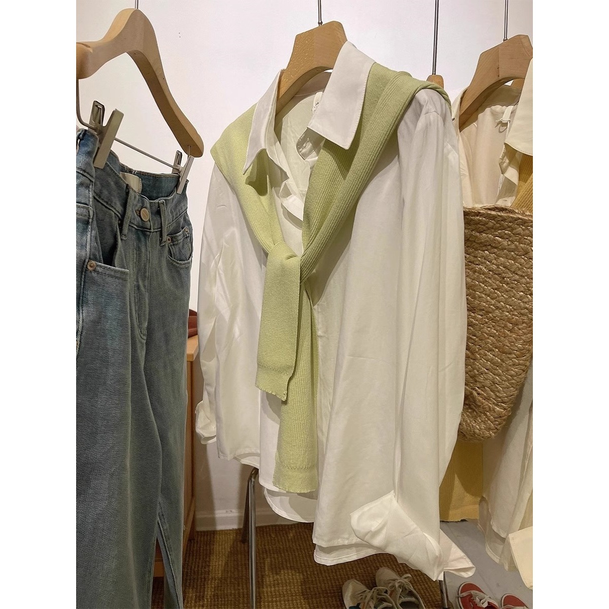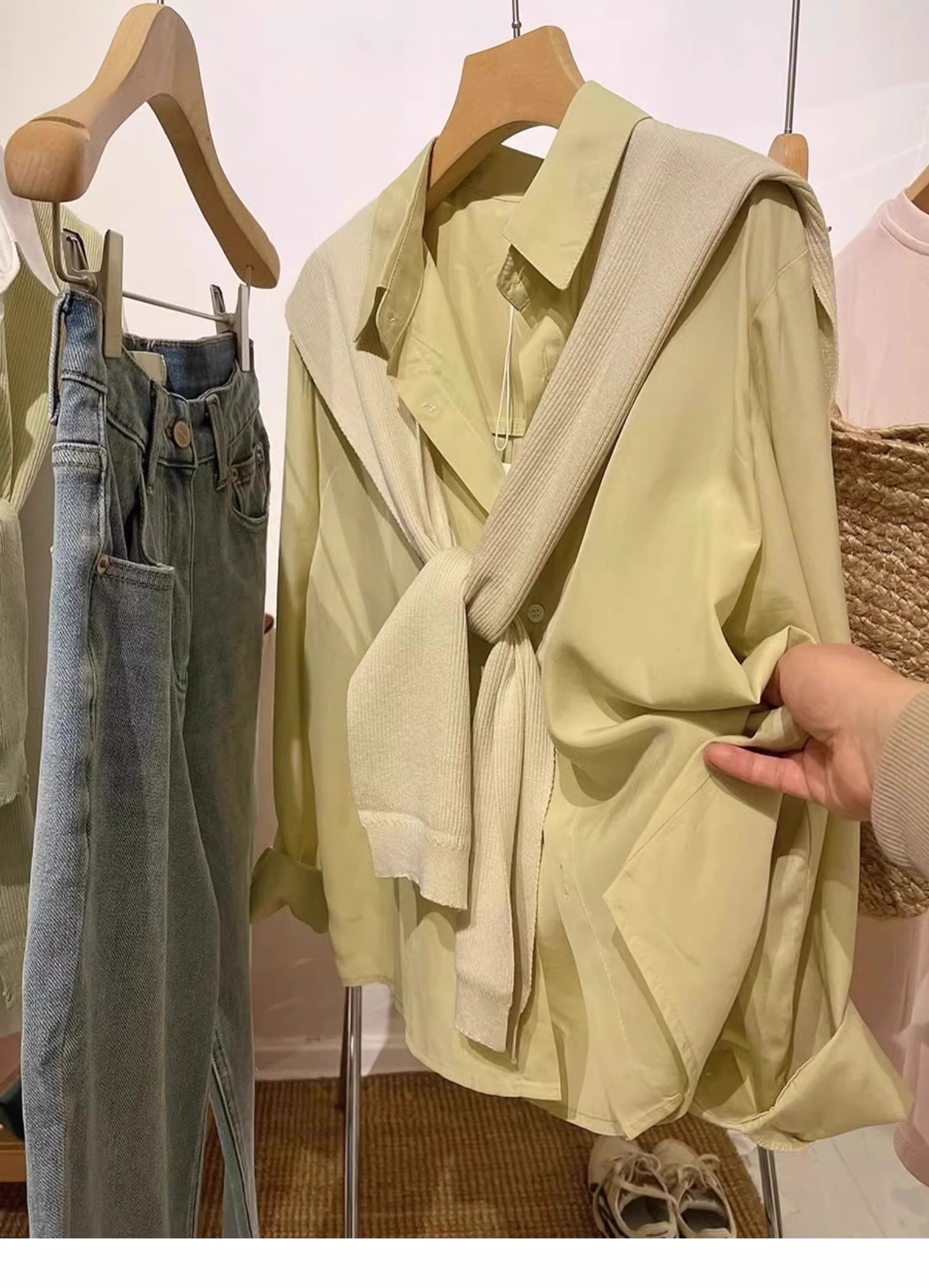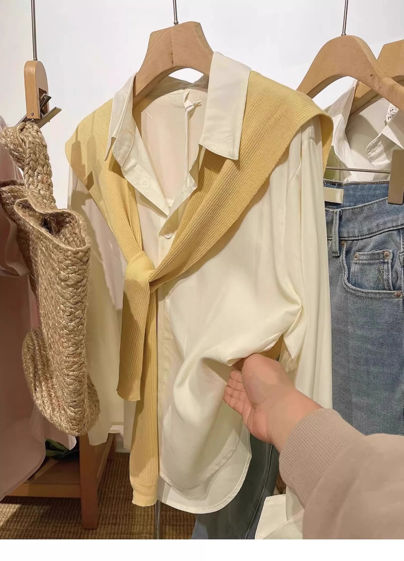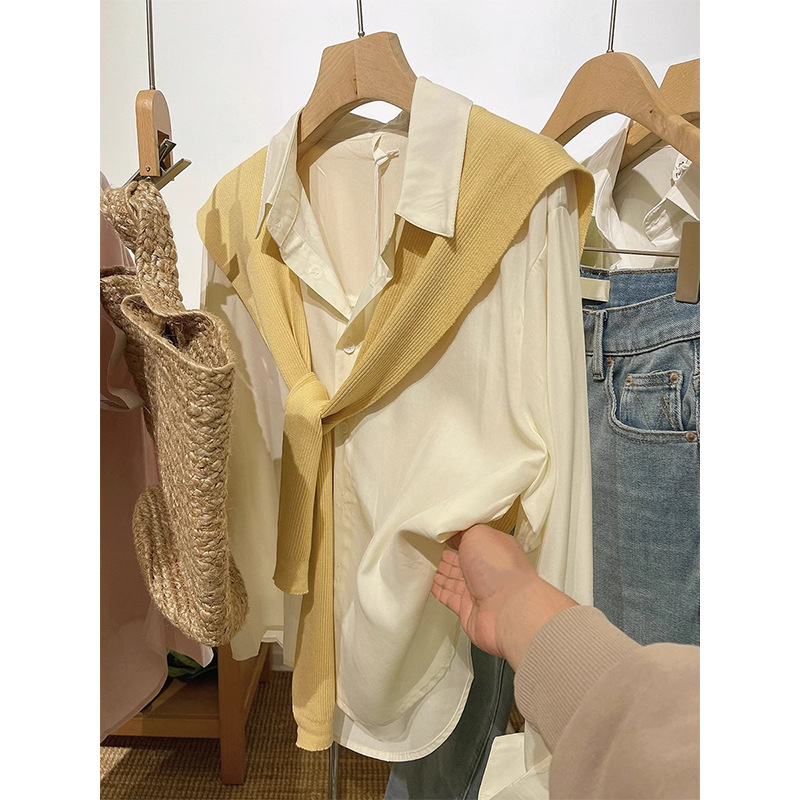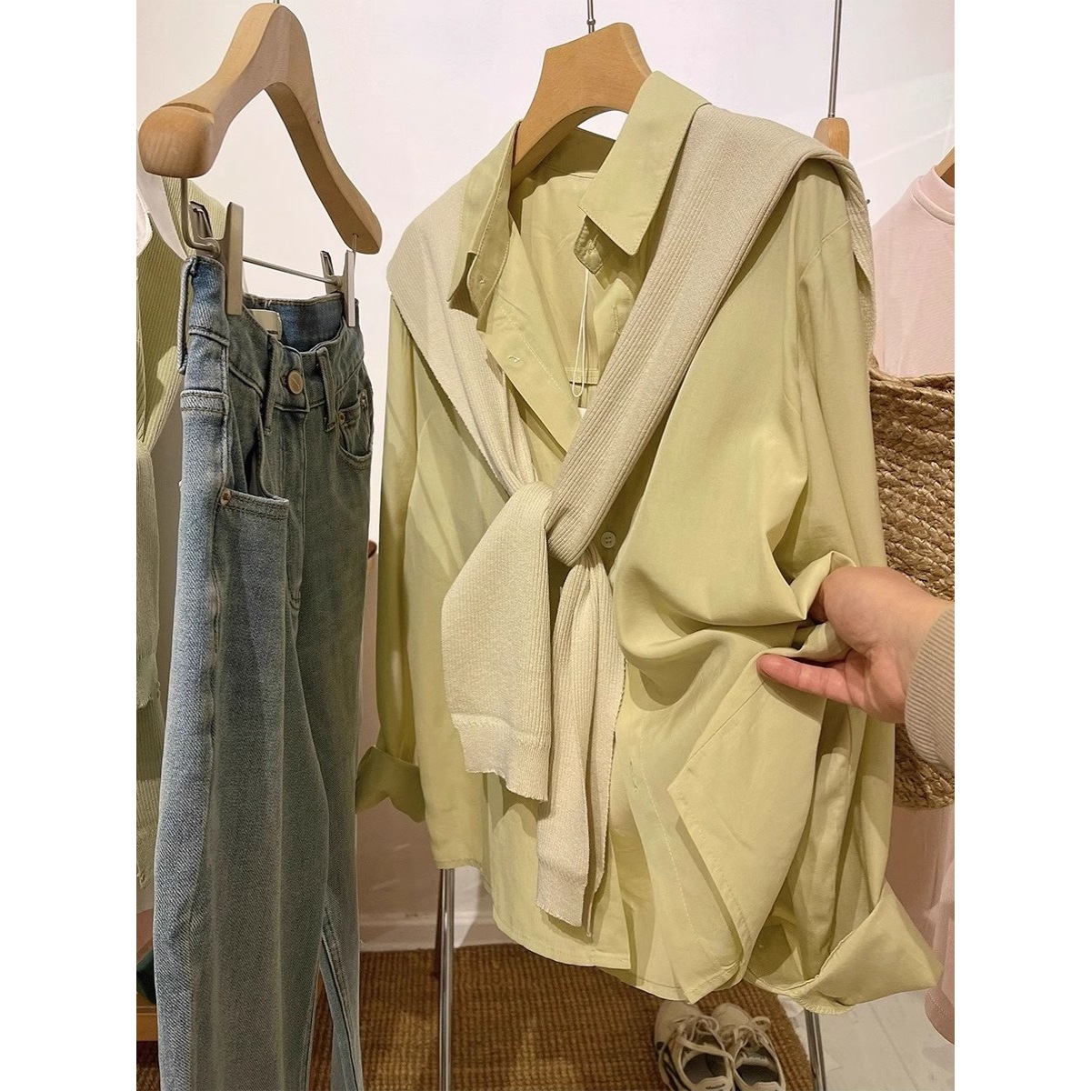 Женская рубашка с длинным рукавом цвета гусиного желтого, ранняя весна 2025 года, новый нишевый дизайн, корейский тенсел, элегантный свободный топ