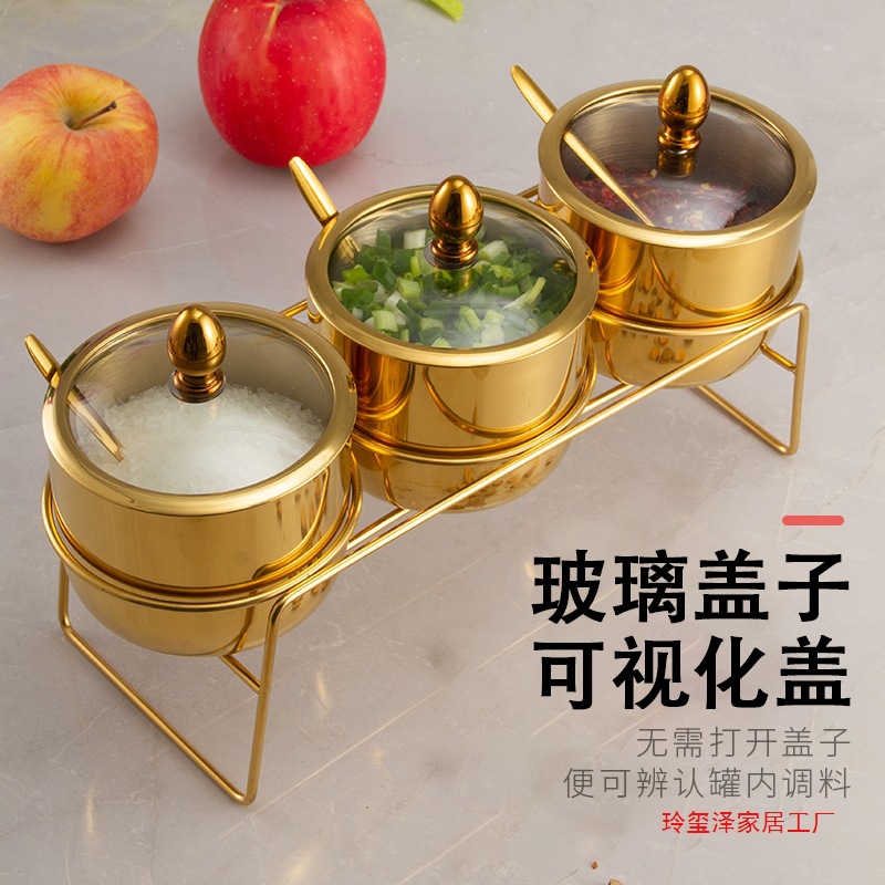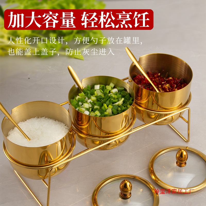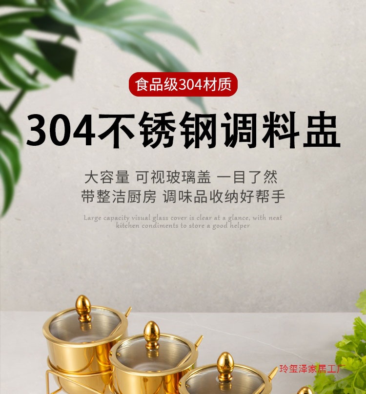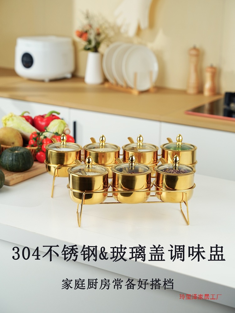 Комбинированный набор банок для приправ из нержавеющей стали 304 с ложкой для хранения приправ, банка для соли чили, глутамата натрия, чашка для вкуса