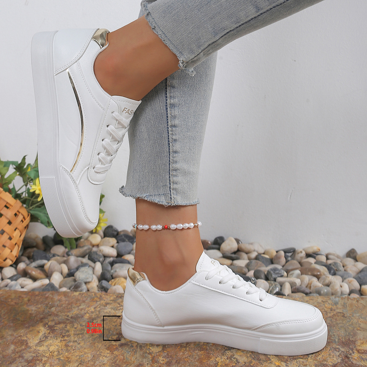 Белые женские кроссовки весна-осень 2025, кожаные, водонепроницаемые, повседневные, спортивные, с мягкой нескользящей подошвой, универсальные.