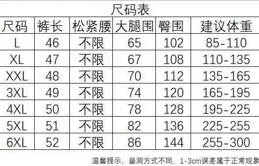 L Рекомендация 42.5-55kg; Рекомендации XL 55-67.5kg; 2XL рекомендуется 67.5-82.5kg; 3XL рекомендуется 82.5-97.5kg; 4XL рекомендуется 97.5-112.5kg; 5XL рекомендуется 112.5-127.5kg; 6XL рекомендуется 127.5-150kg