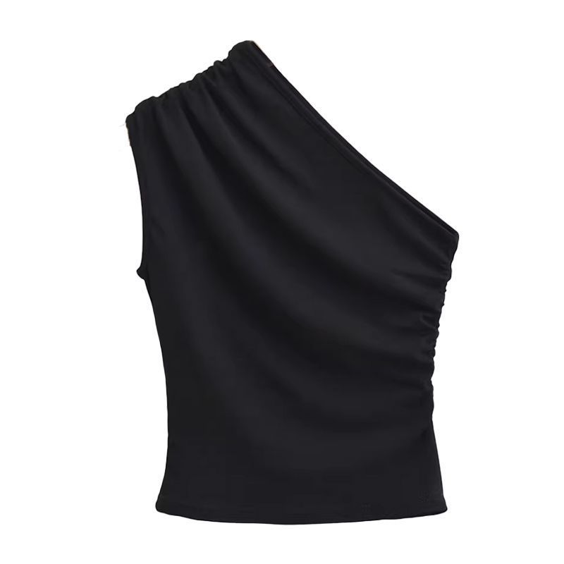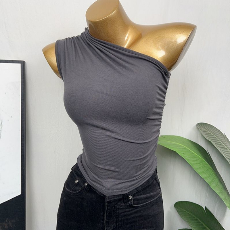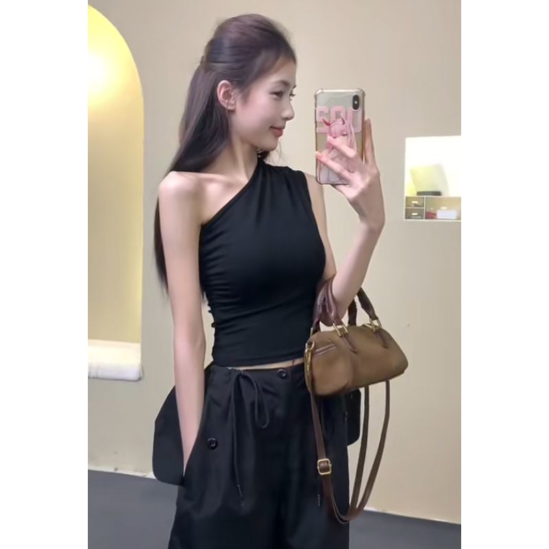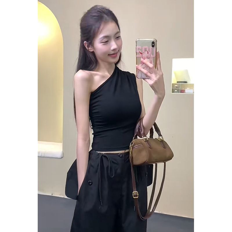 Черный жилет с косыми плечами для женской летней верхней одежды, уникальный и шикарный топ с открытыми плечами и короткими рукавами для горячих девушек, сладкий и пряный топ