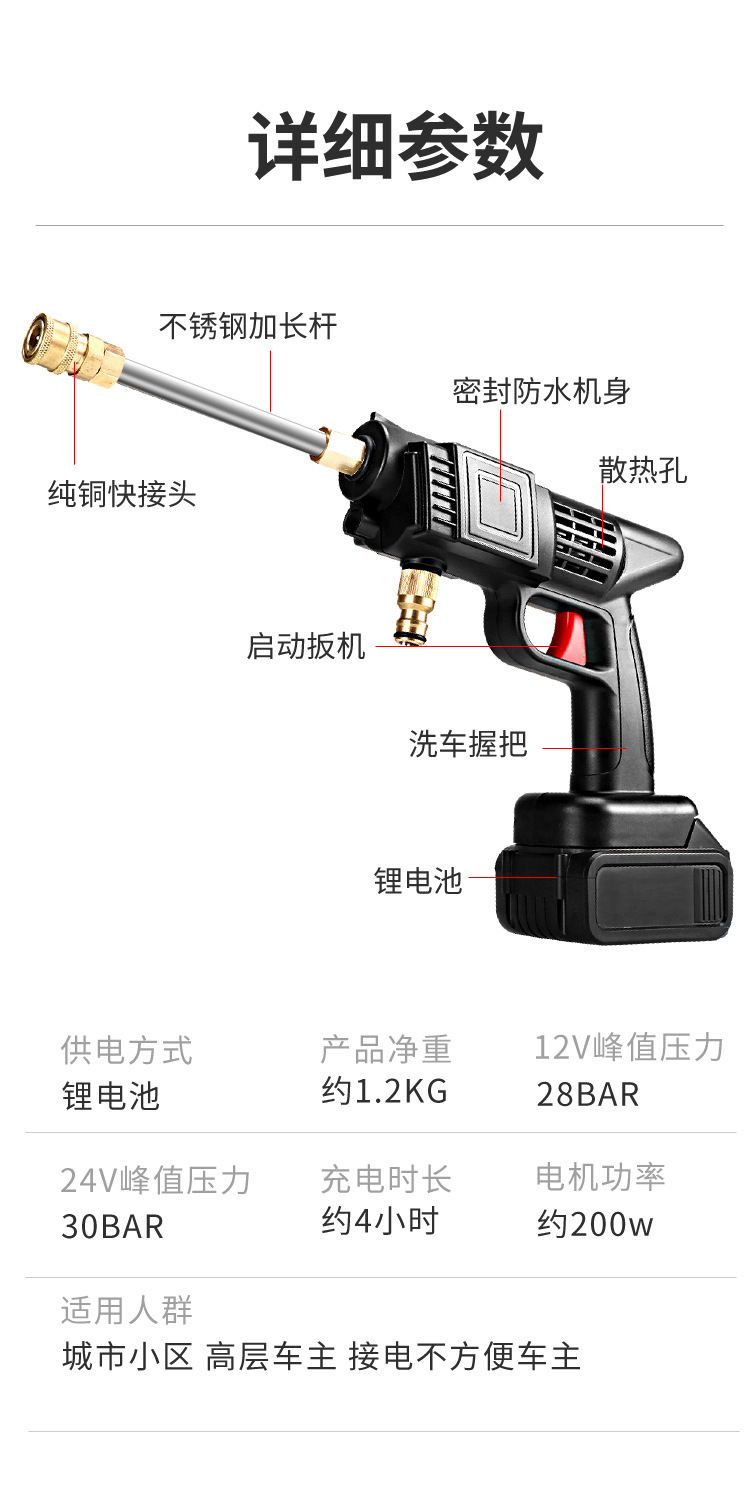 Автомобильная мойка высокого давления, бытовая беспроводная машина для мойки автомобилей, литиевая батарея, распылитель, смывной артефакт