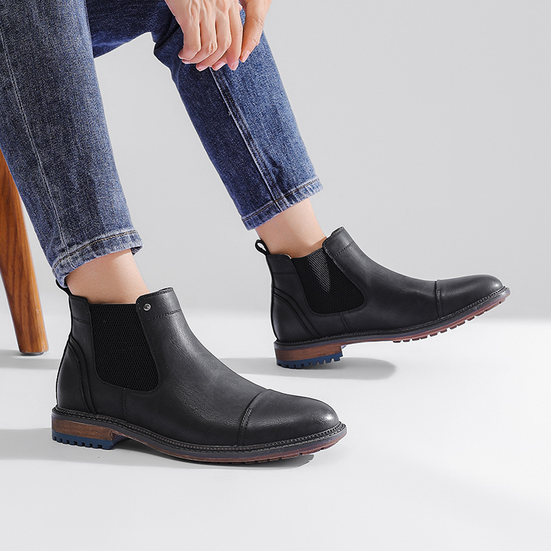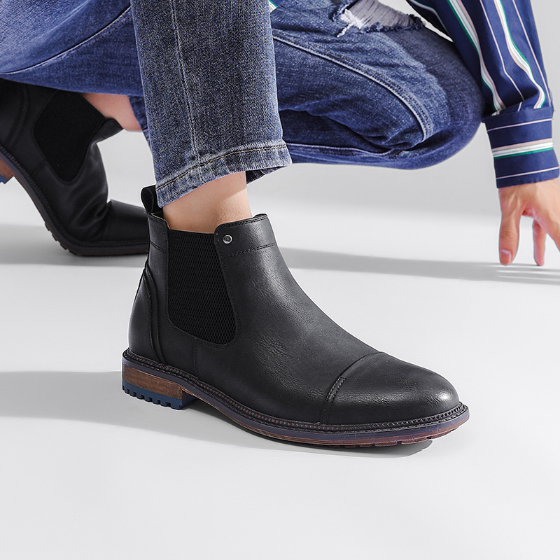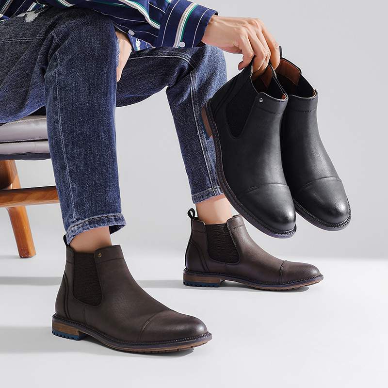 Мужские ботинки челси в стиле ретро, полированные, в британском стиле, трехсоставные, трансграничные, большие размеры 40–46, эластичные короткие ботинки.