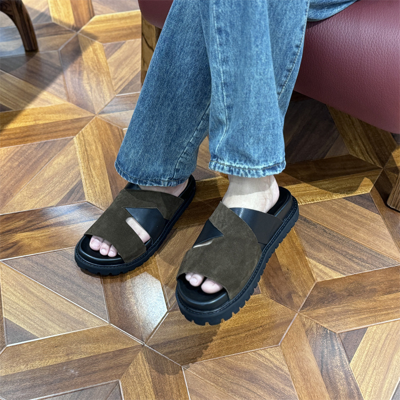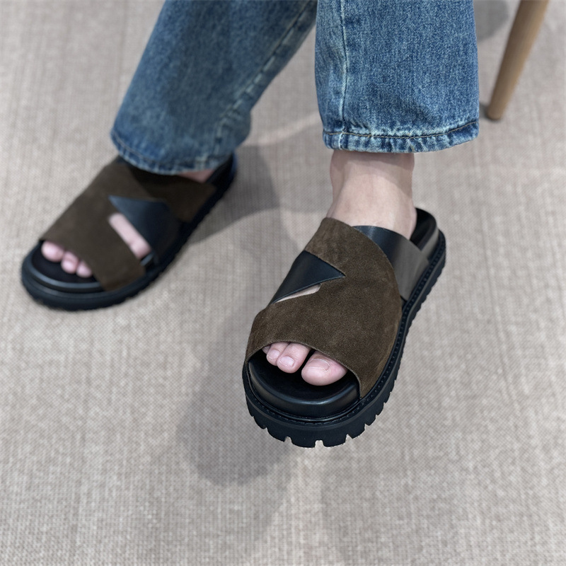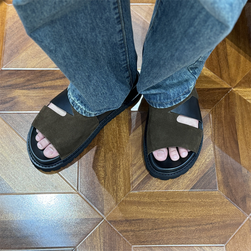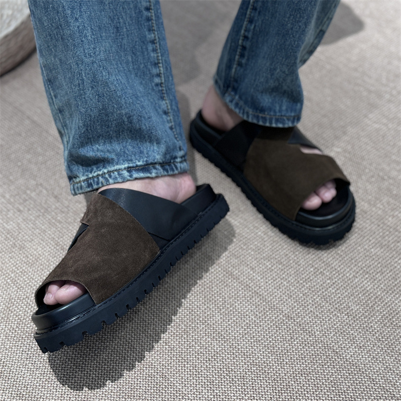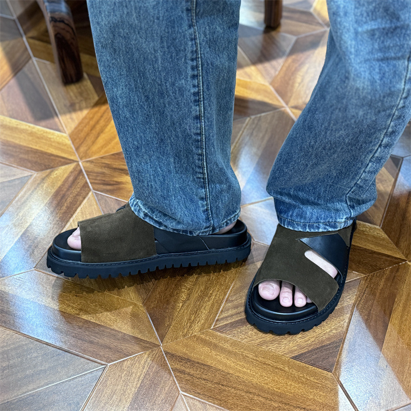 Мужские летние сандалии 2025 года, новые, на толстой подошве, из натуральной кожи, плоская подошва, из цельной телячьей кожи.