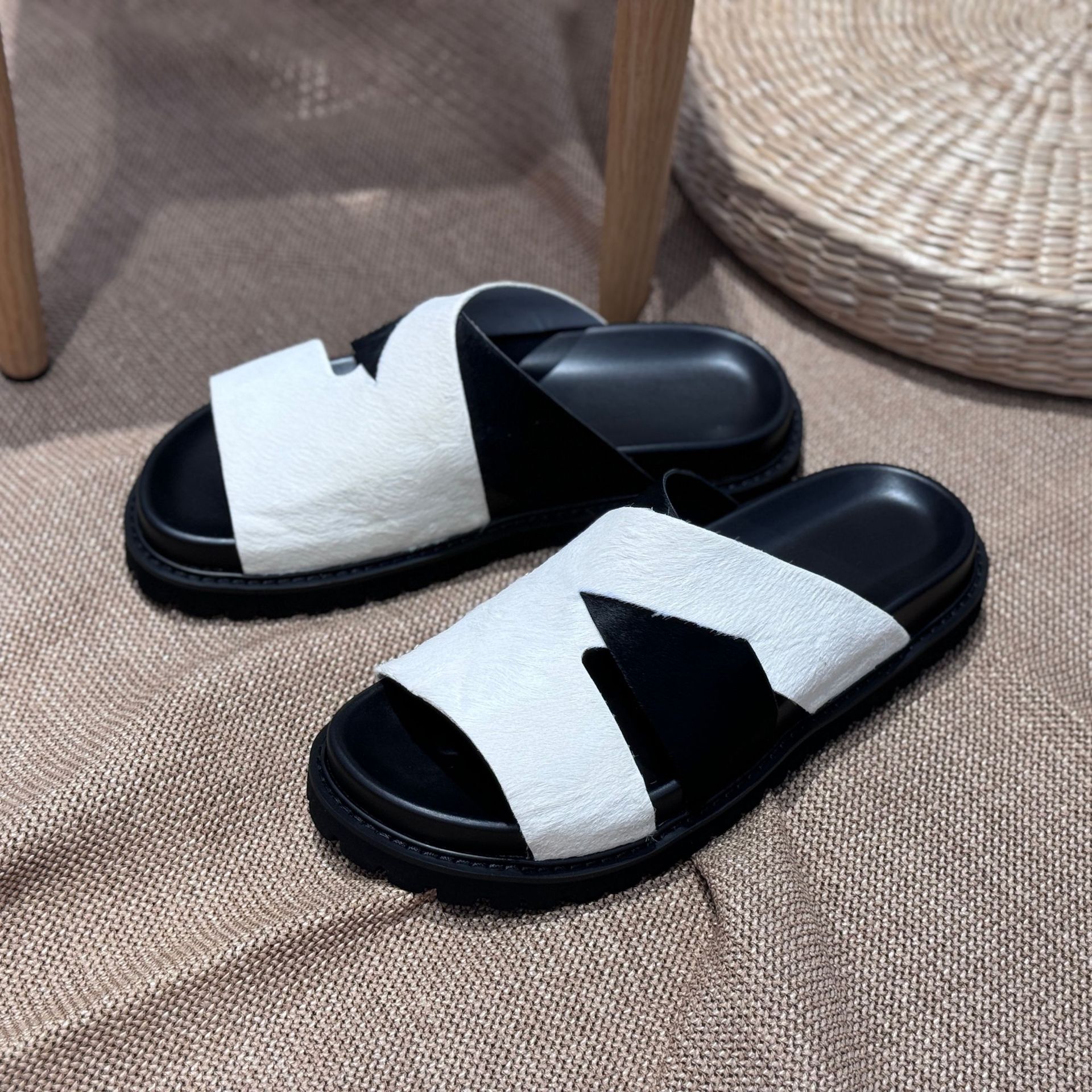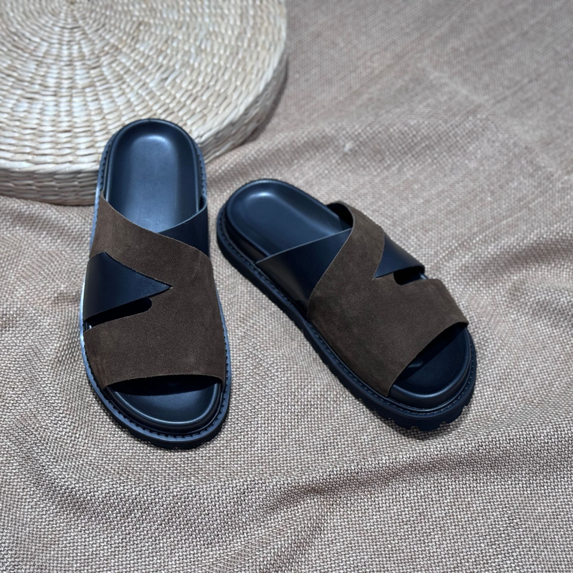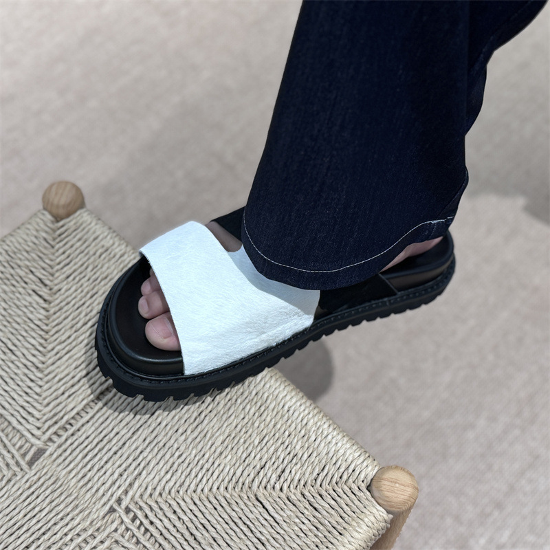 Мужские летние сандалии 2025 года, новые, на толстой подошве, из натуральной кожи, плоская подошва, из цельной телячьей кожи.