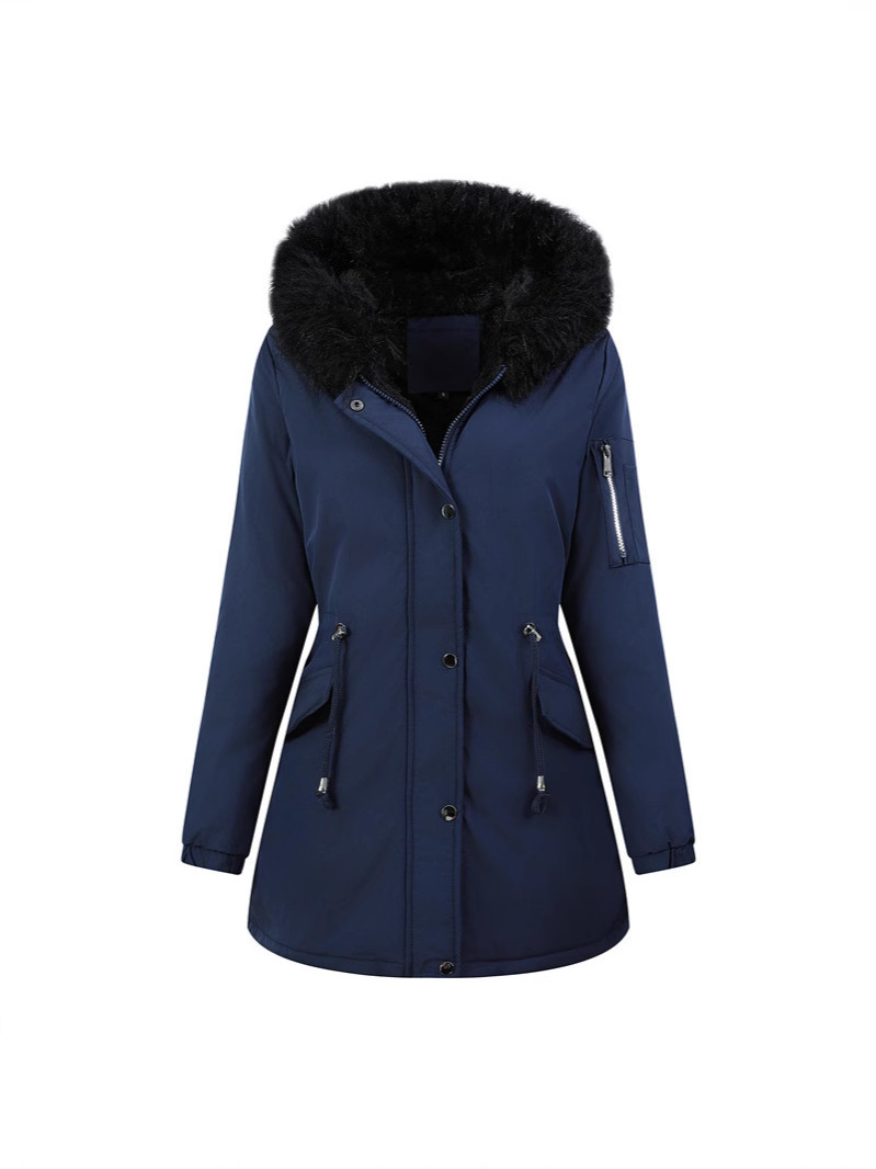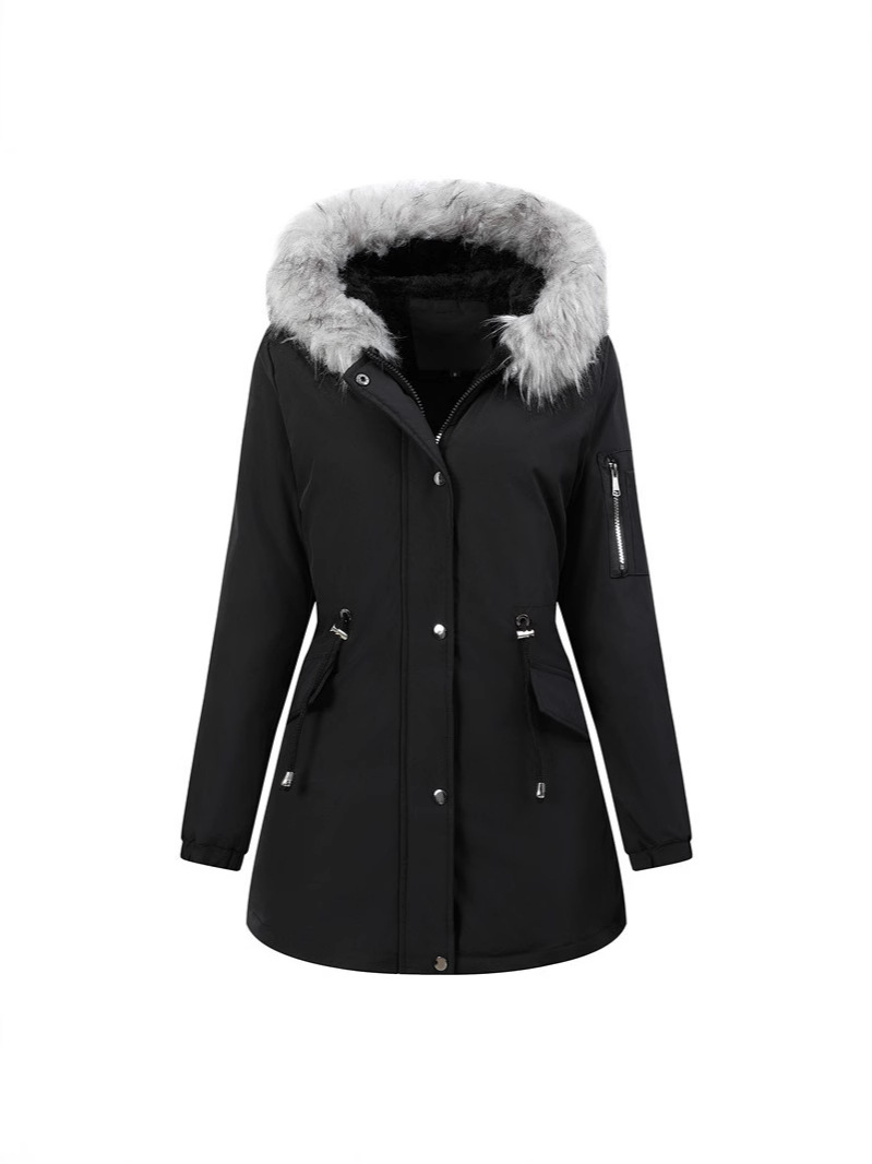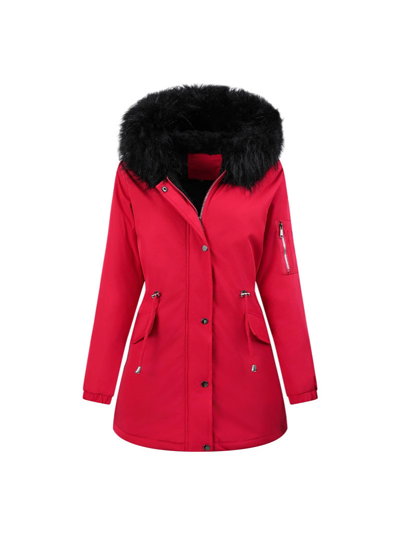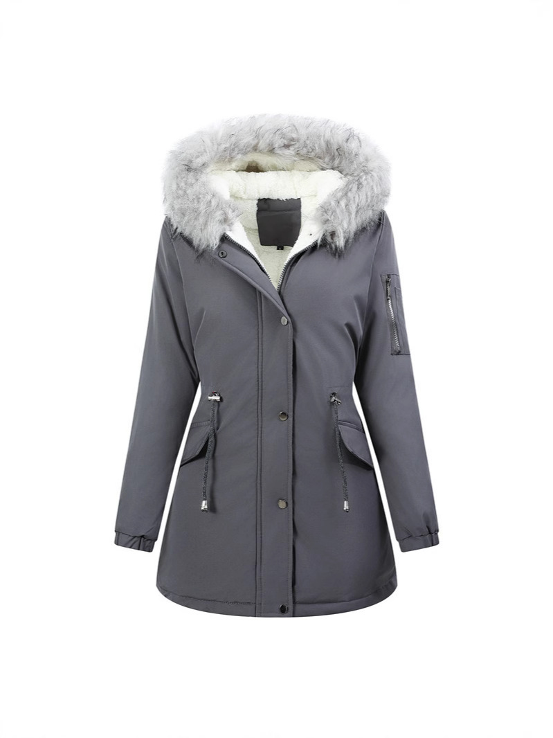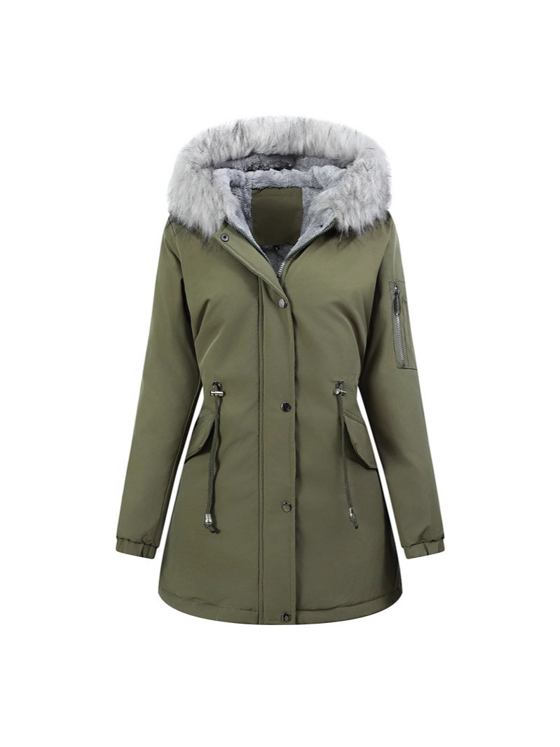 Новая женская зимняя парка средней длины с капюшоном, утепленная флисовая куртка с меховым воротником и затягивающимся поясом, утепленная хлопковая куртка