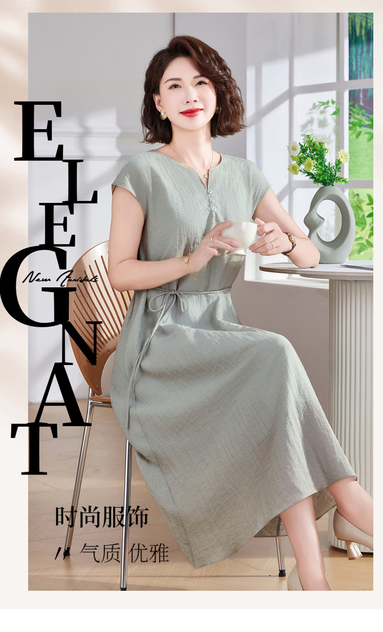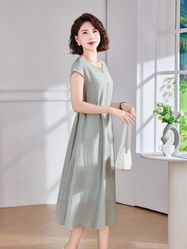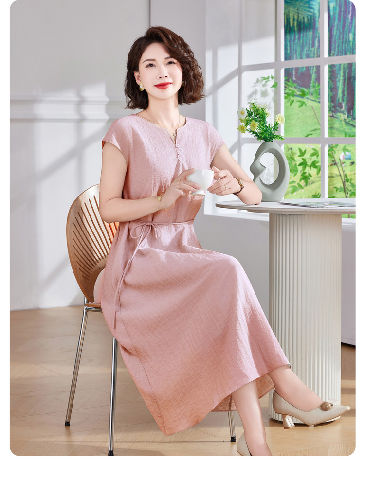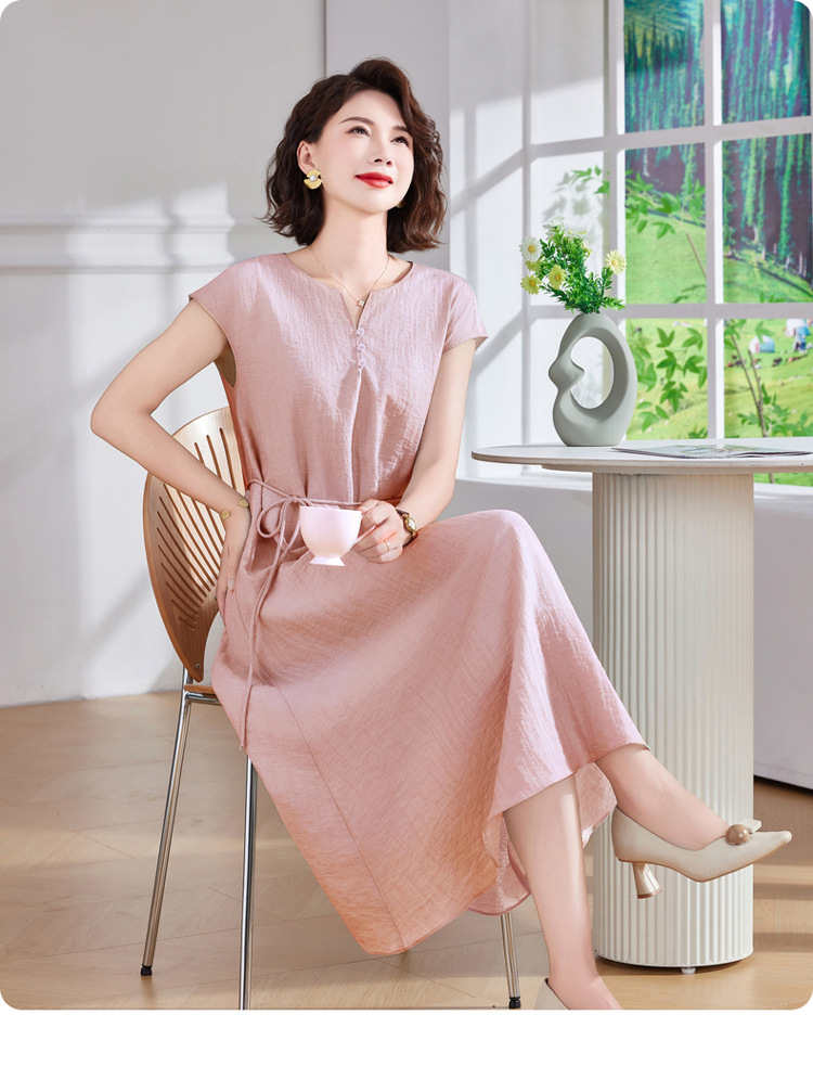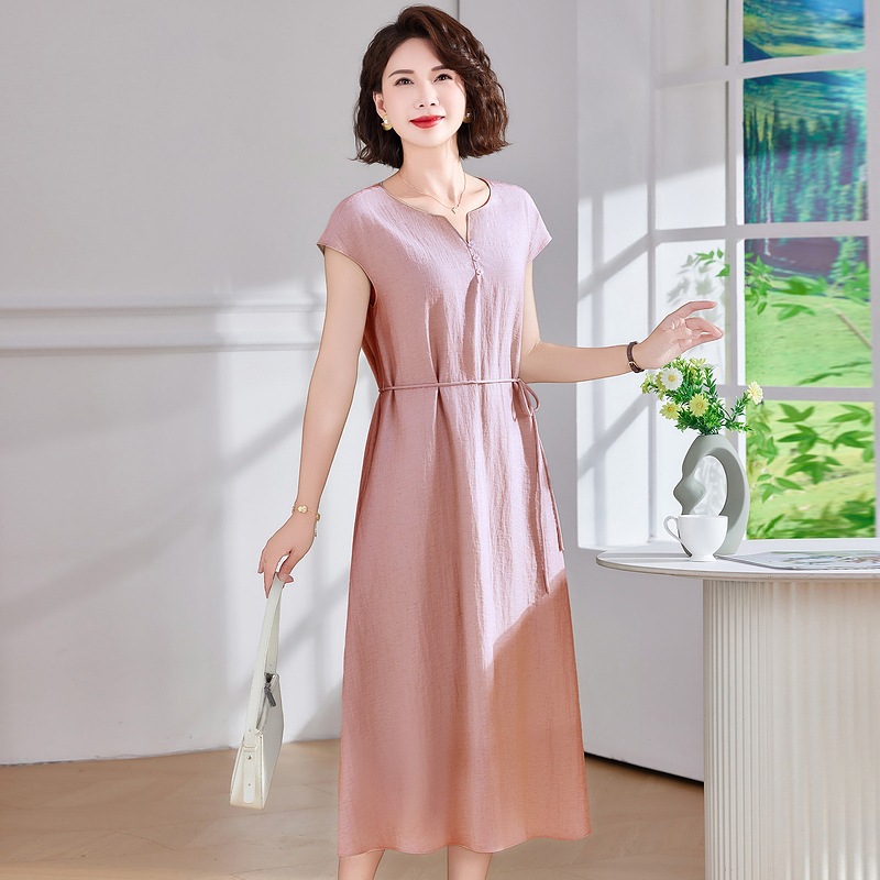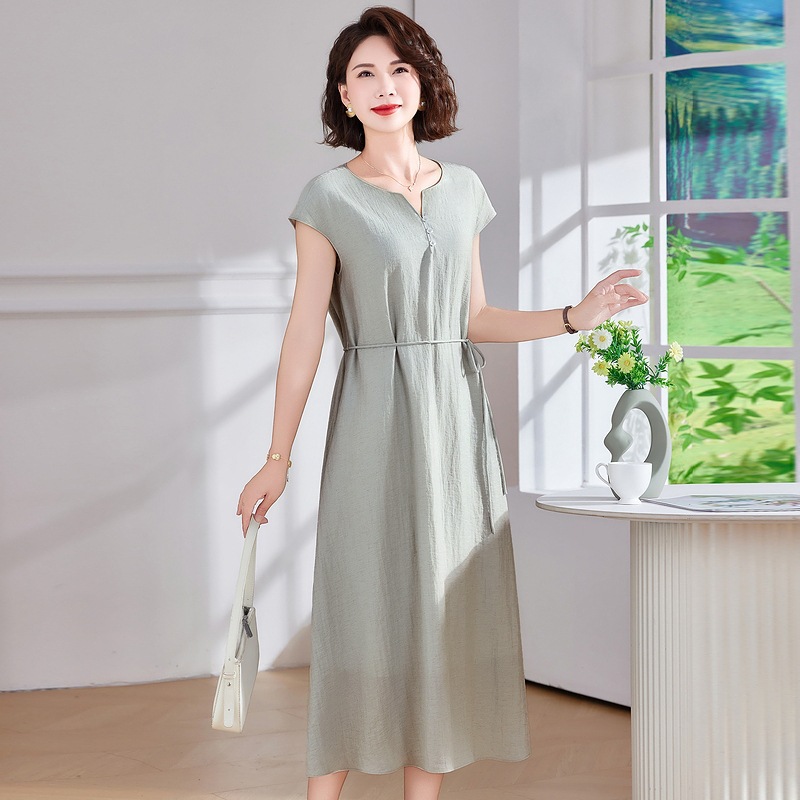 Льняное летнее новое стильное платье для мамы из тенселя, свободная талия, утягивающая длинная юбка, повседневная юбка с короткими рукавами для женщин